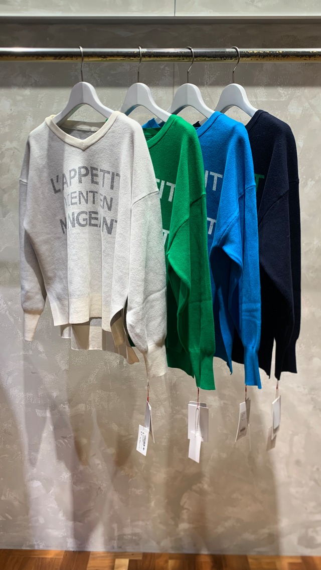 コットン100%の洗えるロゴニットトップスです。vネックで首回りがすっきりみえるところがポイント。コットン素材なのチクチクしない着心地の良さも魅力。冬はTシャツやハイネックトップスとのレイヤードスタイルで暖かく、春先は一枚で軽く着用いただけます。 ご自宅でお洗濯可能で、シーズン長くご着用いただけます。 【素材】 コットン 100% 【サイズ】 FREE 肩幅(㎝)55/身幅55/袖丈48/着丈51/57