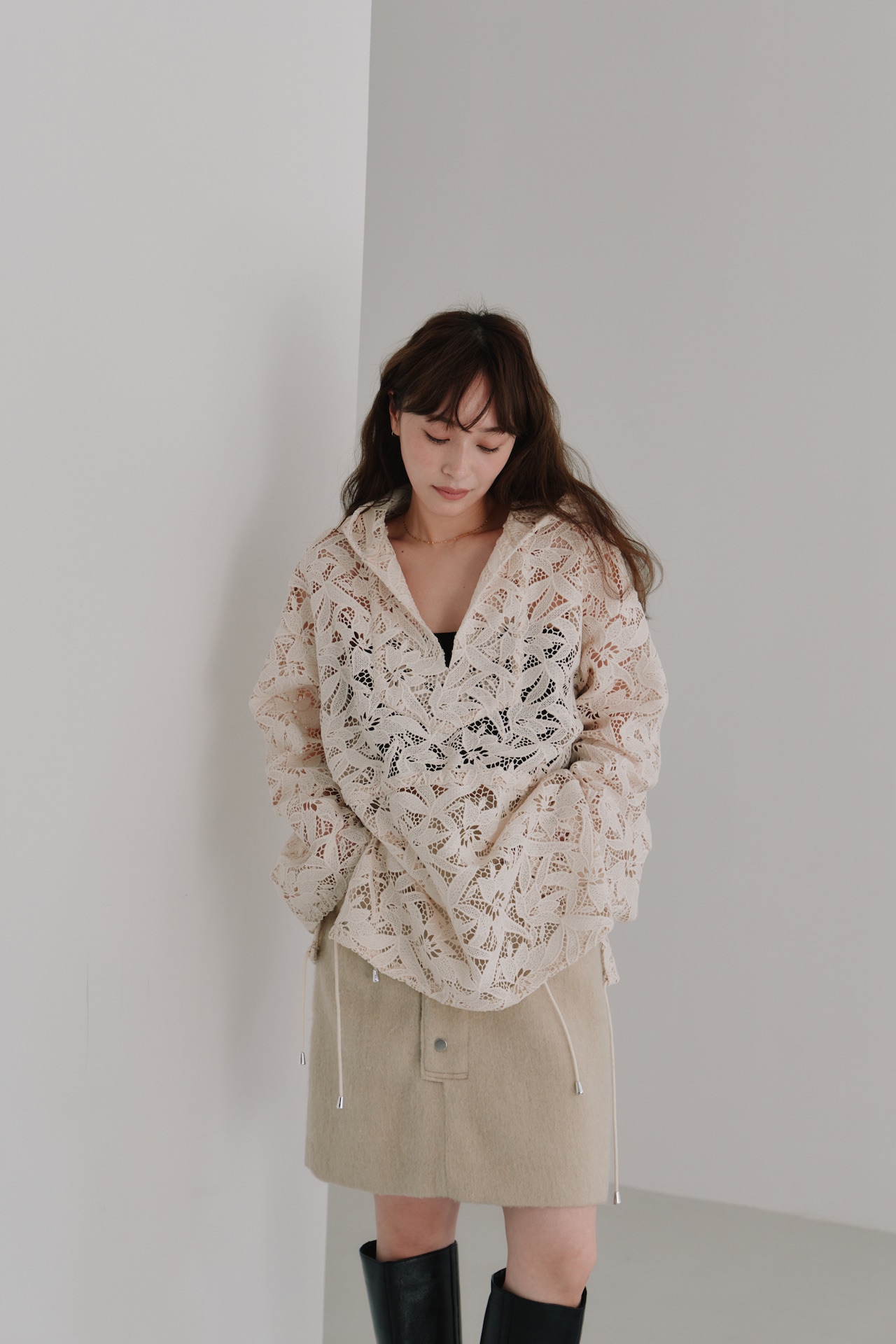 以前ご好評いただいた、レースフーディーの生地を変えてリバイバル。