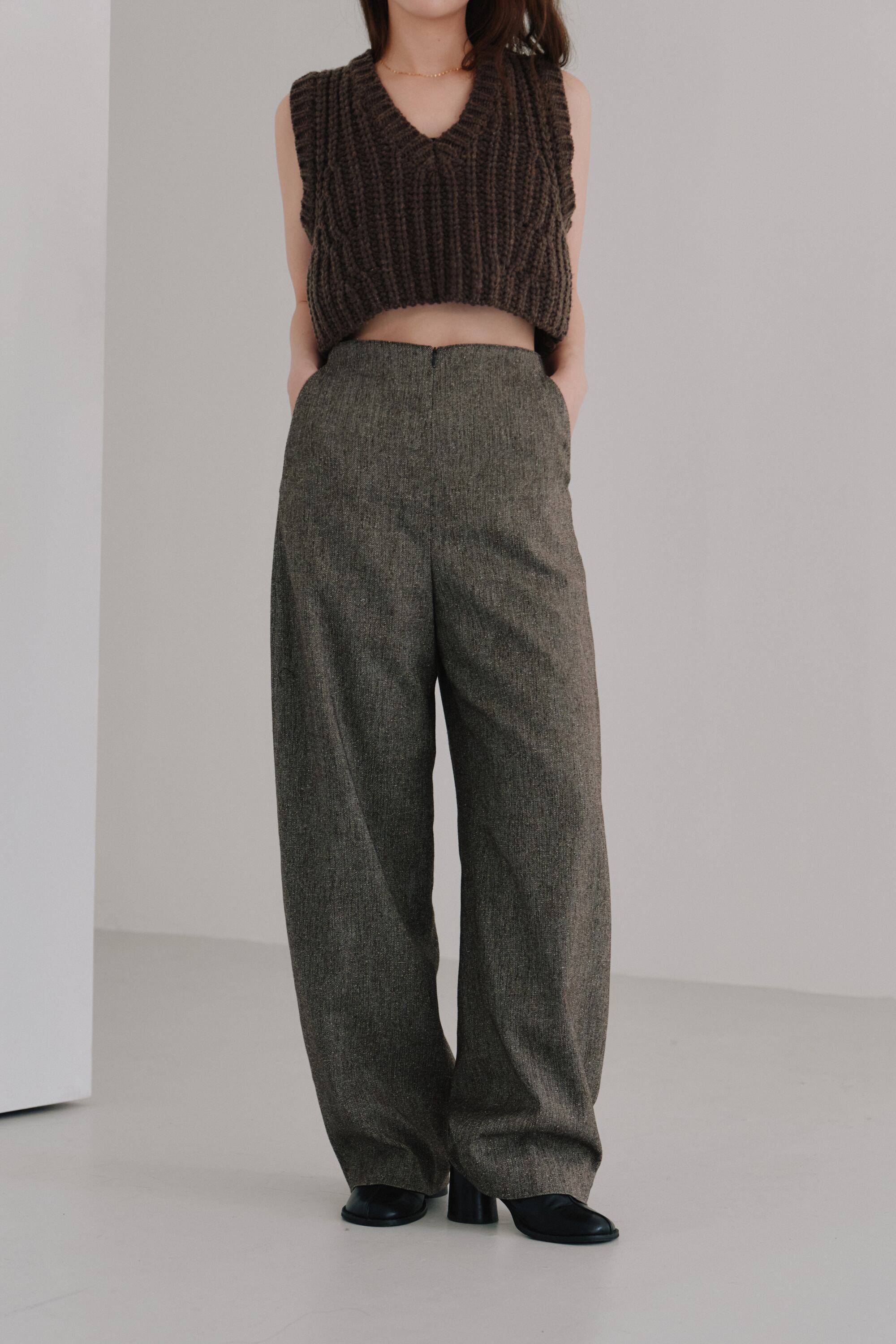程よいクロップド丈がコーディネートを引き締め、シャツやカットソーとレイヤードすることで幅広いスタイリングが楽しめます。