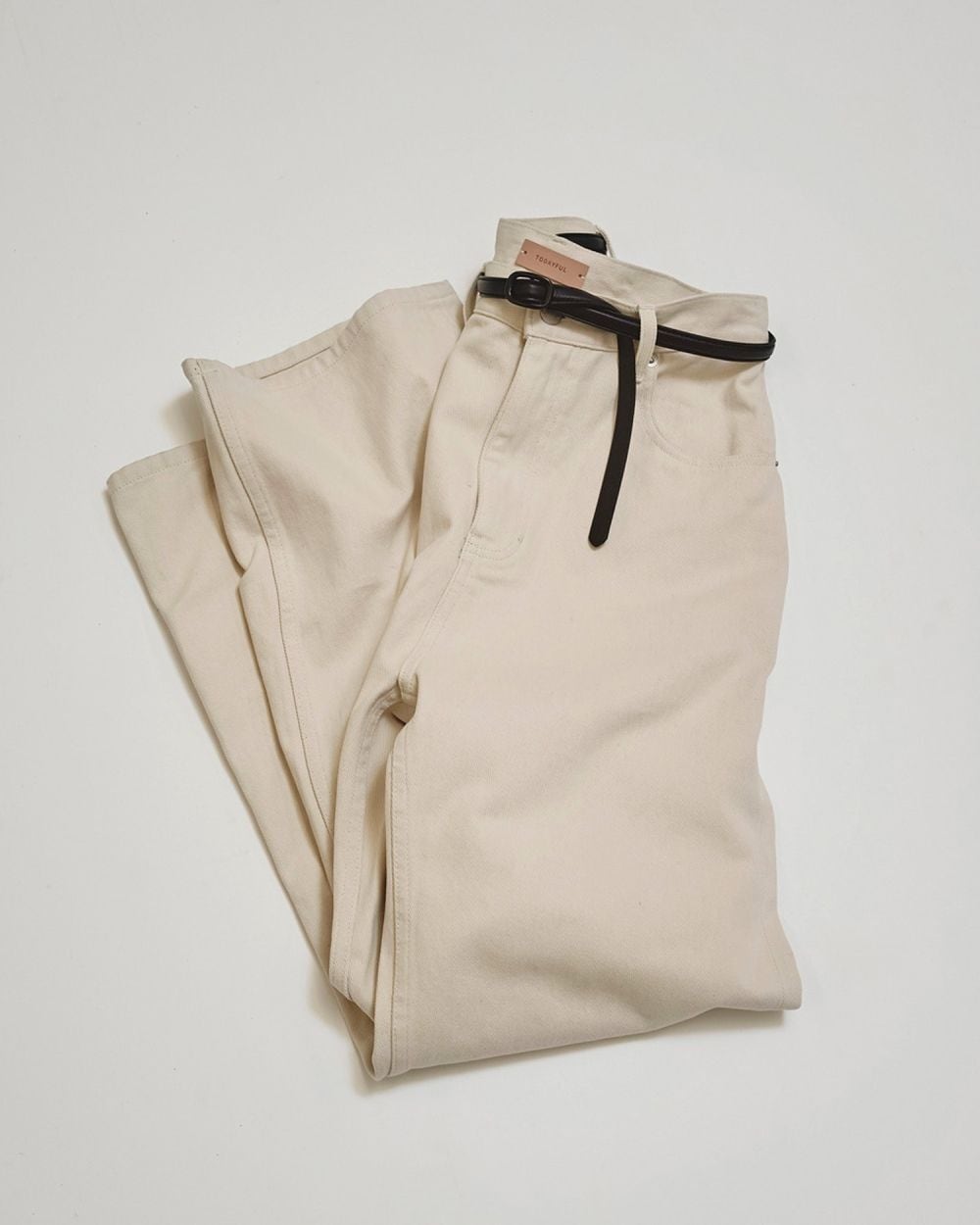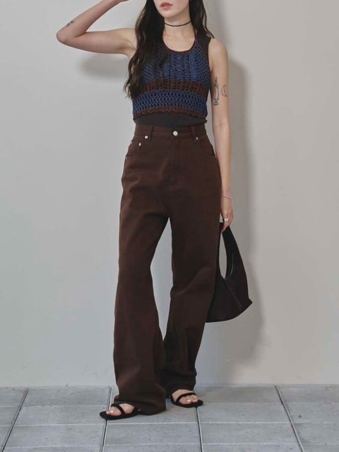 ストレートラインで全体的にゆるっとしたルーズ感のあるシルエットが魅力のカラーデニム。少し腰を落としてマニッシュな雰囲気で履いていただくのがおすすめで、TODAYFULならではのオリジナルカラーで染めたニュアンスカラーは様々なトップスと好相性な一枚です。
