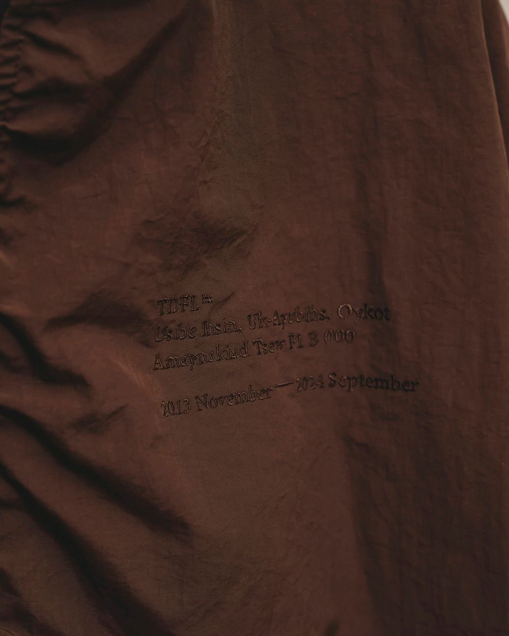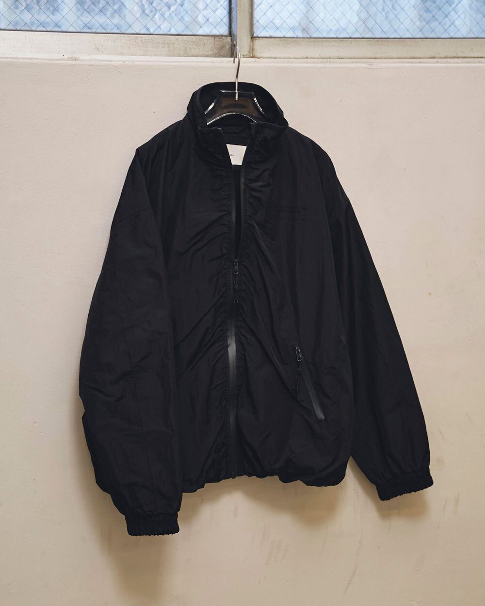 適度なハリのあるナイロン生地を使用したブルゾン。控えめな光沢感が特徴で、胸元のグラフィック刺繍や止水ファスナーがアクセントとなる一枚。裏地には柔らかなフリース生地を使用し、スタンドカラーで首元を暖かく包み込みます。軽やかな着心地とカジュアルなデザインがデイリー使いに最適なアイテムです。