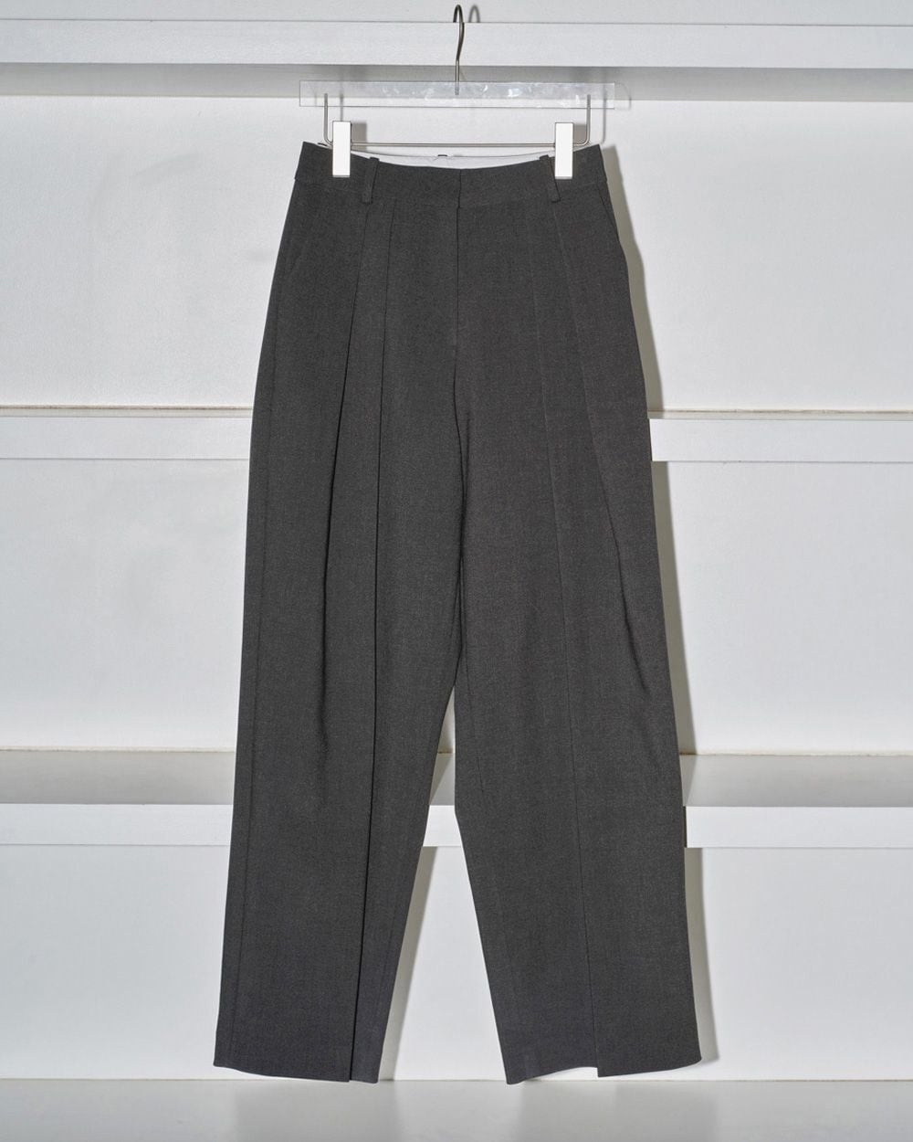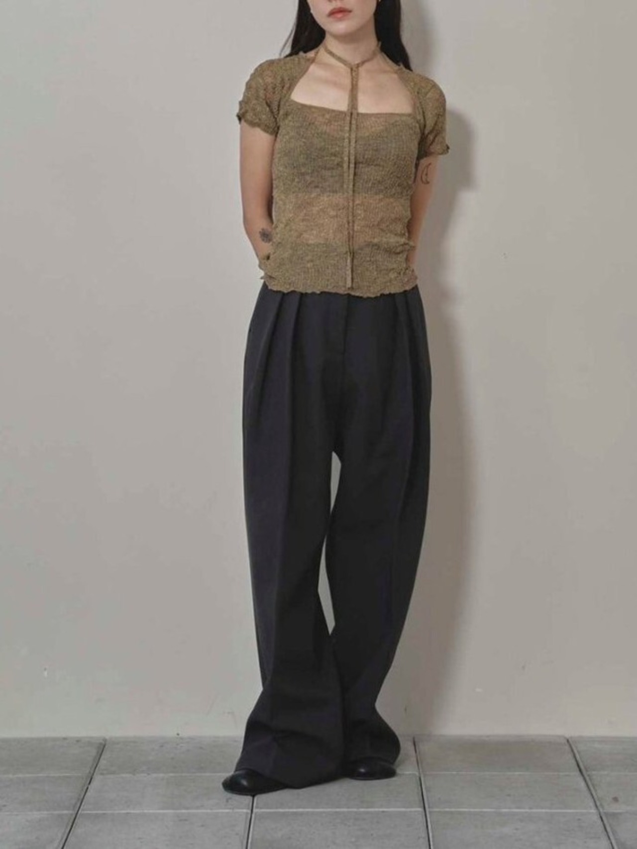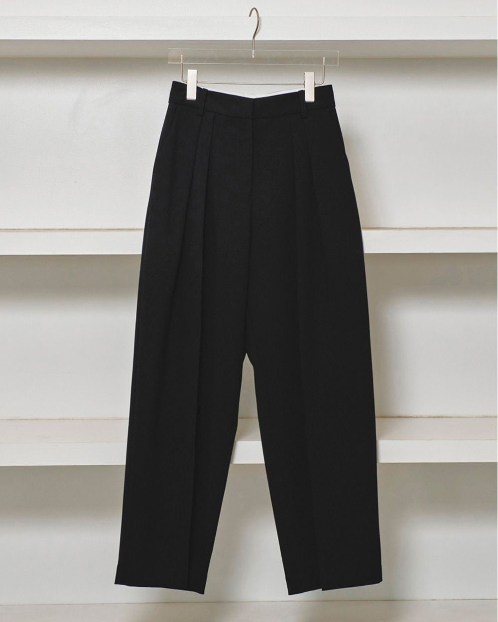 深めのダブルタックとワイドなシルエットが魅力のトラウザーズ。上質なツイル生地を使用し、内側に別生地をボンディング加工することで、シルエットをより立体的に見せてくれます。表地と同色のパイピングを挟んだオリジナルマーベルトとステッチを表に出さない仕立てがマニッシュでありながらも、どこか上品な印象に。