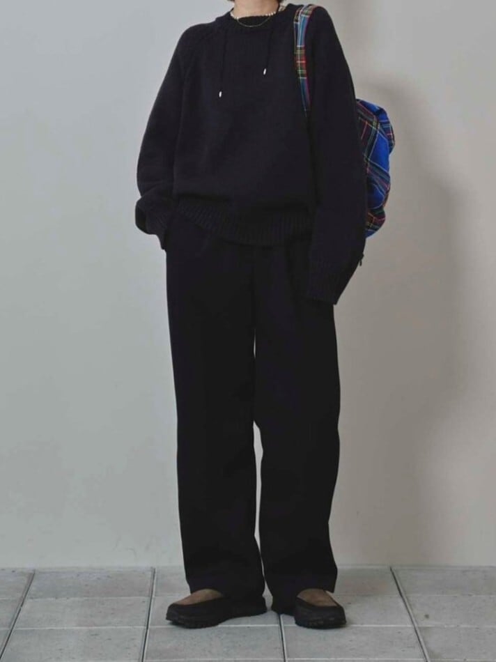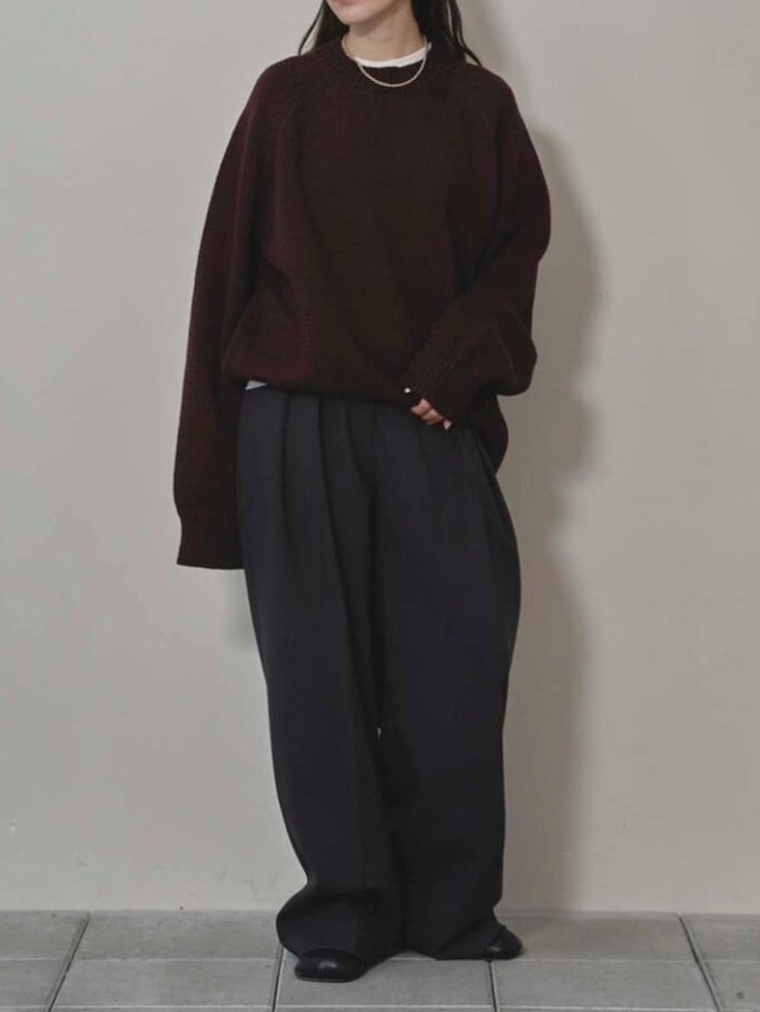 メンズライクなサイズが魅力のニット。コットン混のリリヤーン糸を使用して編んでいます。太めの襟リブや、少しラウンドさせた裾、ゆるっとしたサイズ感はTODAYFULならではの一枚。インナーにカットソーを合わせたスタイリングがおすすめです。