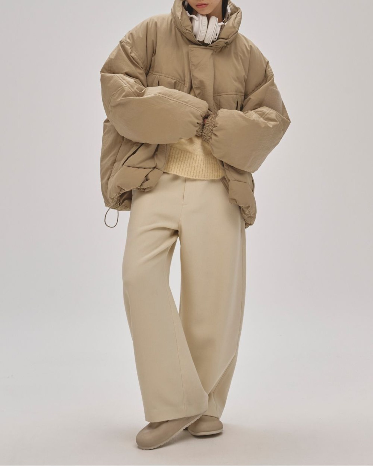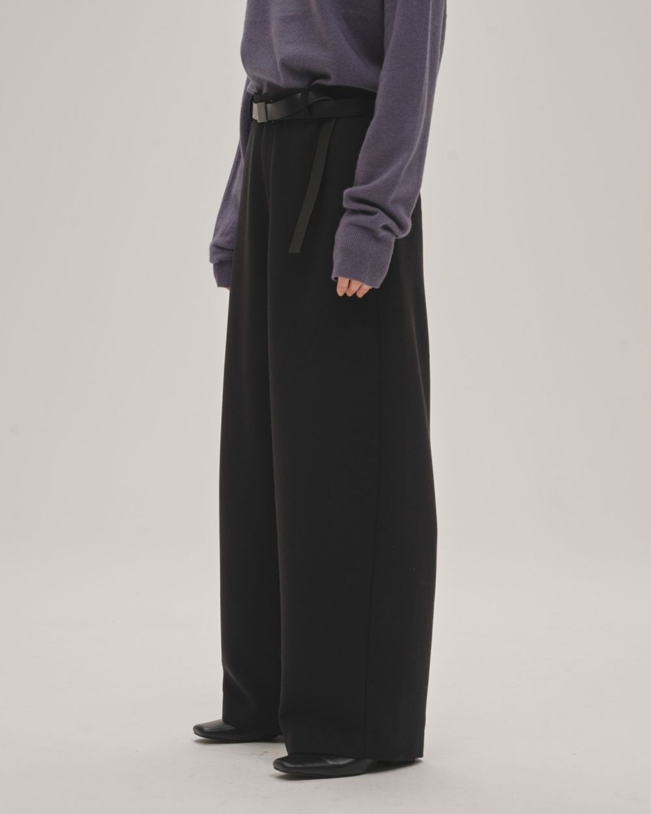 ウール特有の毛羽立ちを抑えた、滑らかで上品な表情の生地を使用したトラウザーズ。ほどよく落ち感がありつつも、シルエットを美しくキープしてくれます。ワイドシルエットにコクーンの丸みを加えた立体的なフォルムは、穿くだけでスタイリングに抜け感とモードな雰囲気をプラス。トップスを選ばず、幅広いシーンで活躍する一枚です。