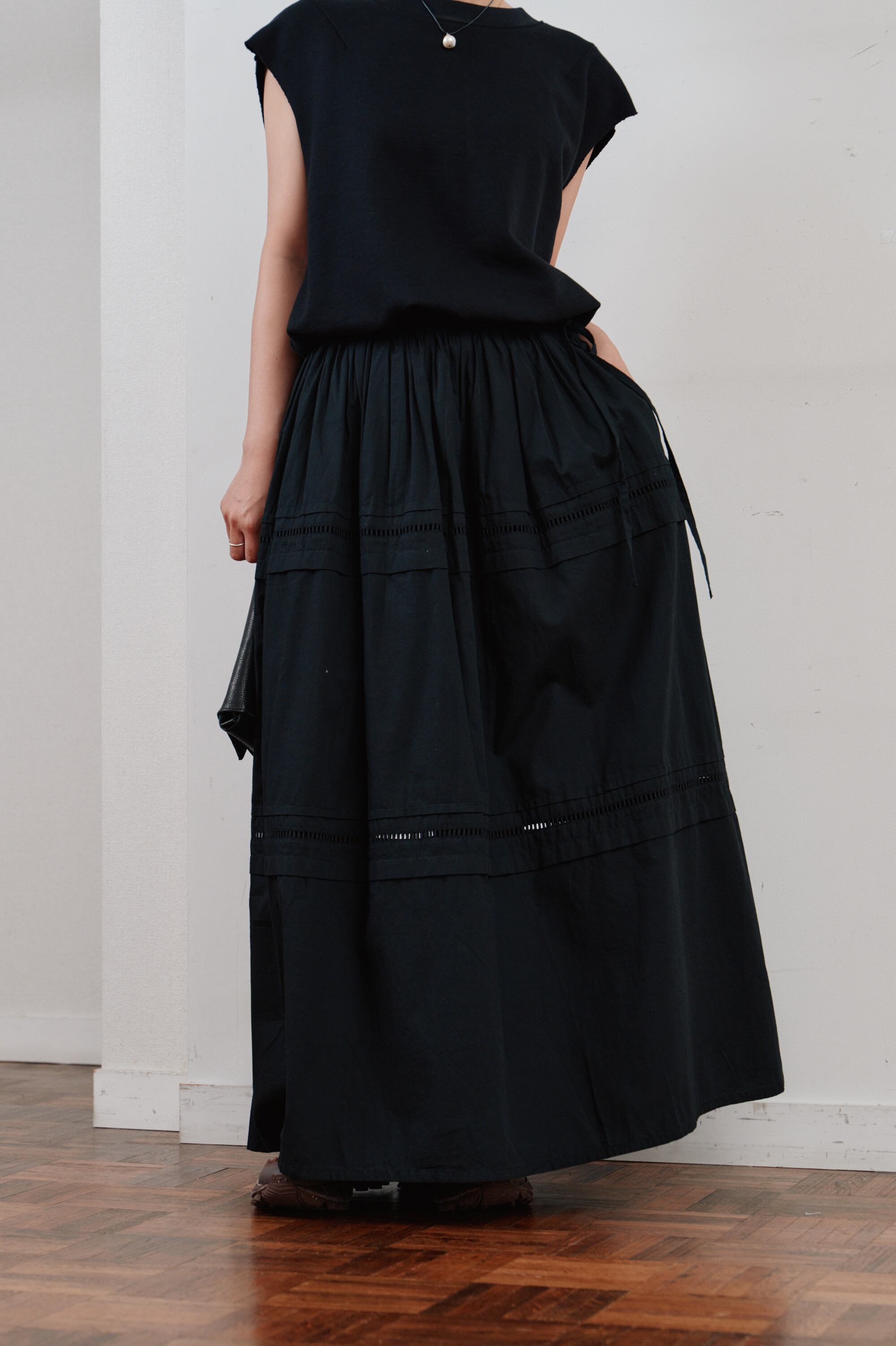 後ろ姿にアクセントを添える、レースアップ仕様のノースリーブトップス。