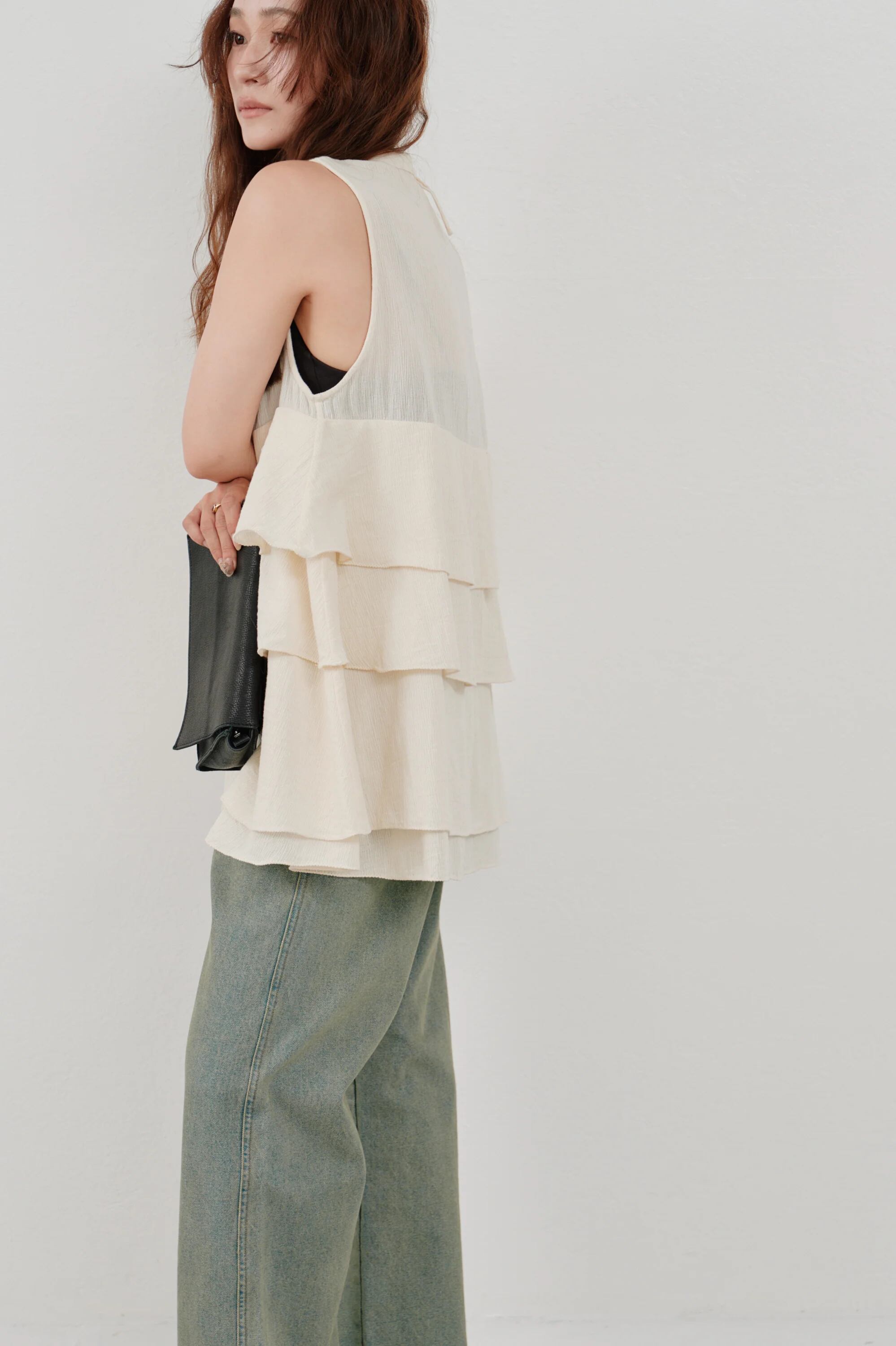 立体感あるティアードフリルが目を惹く、夏らしいブラウス。
