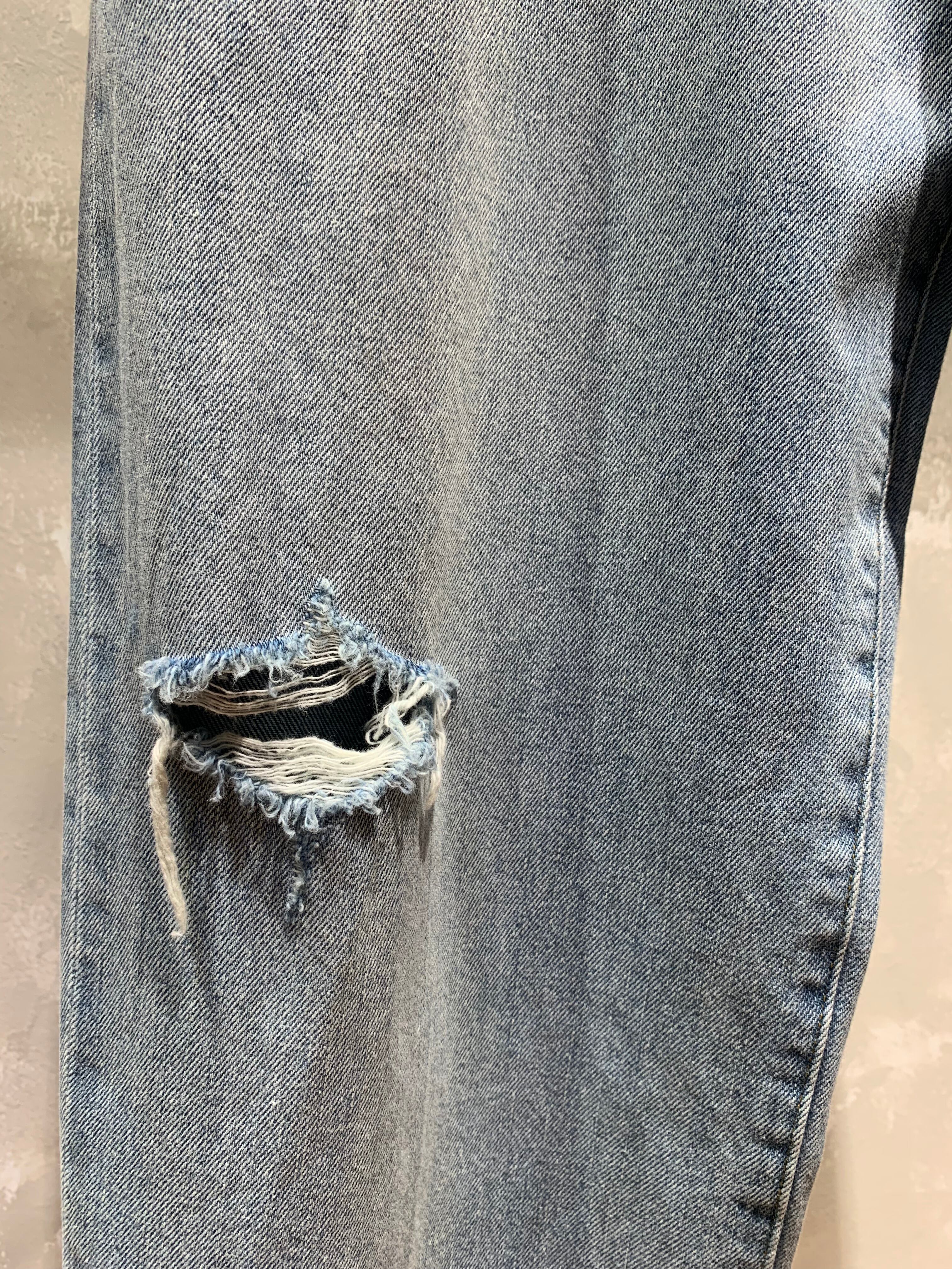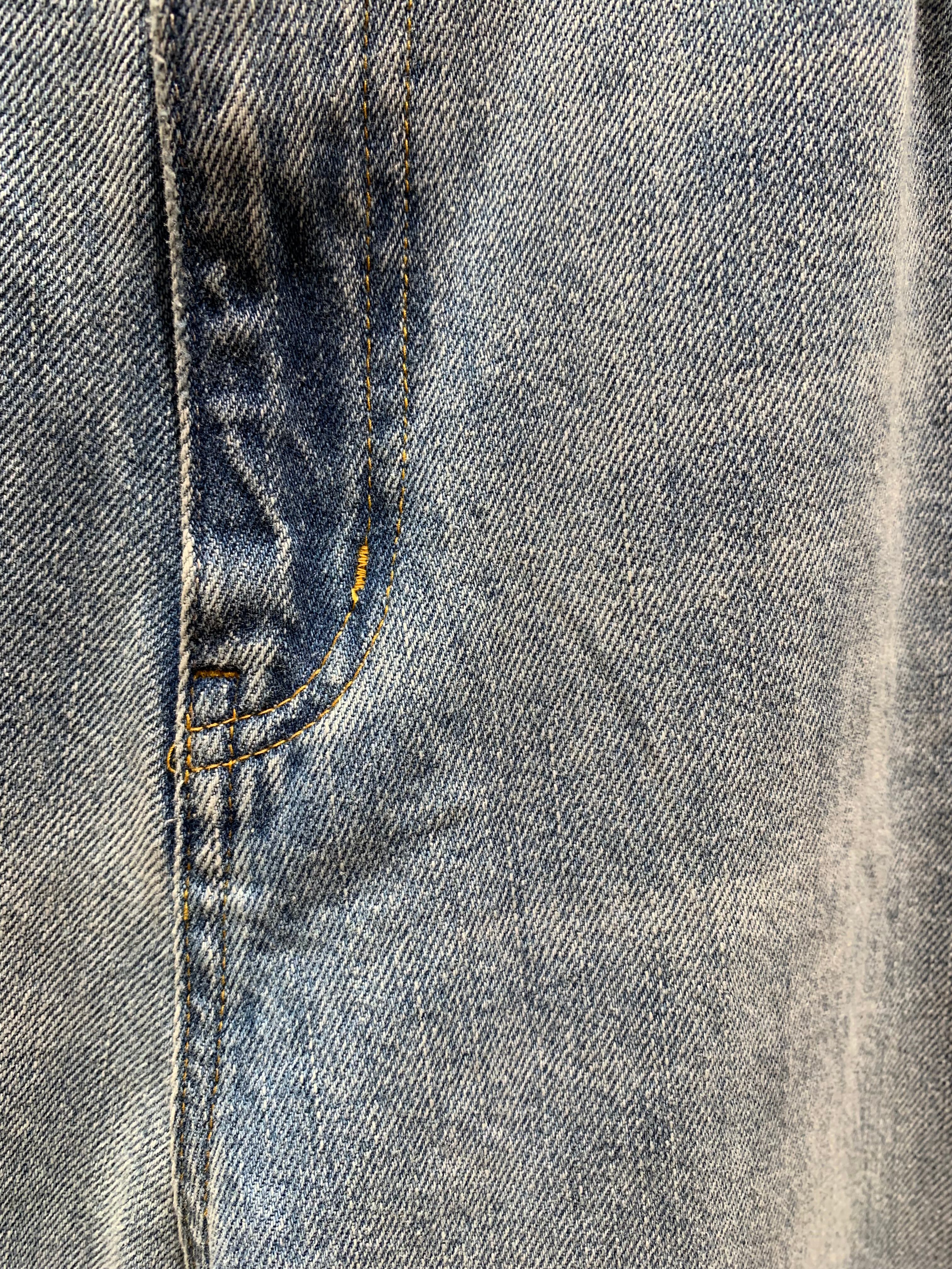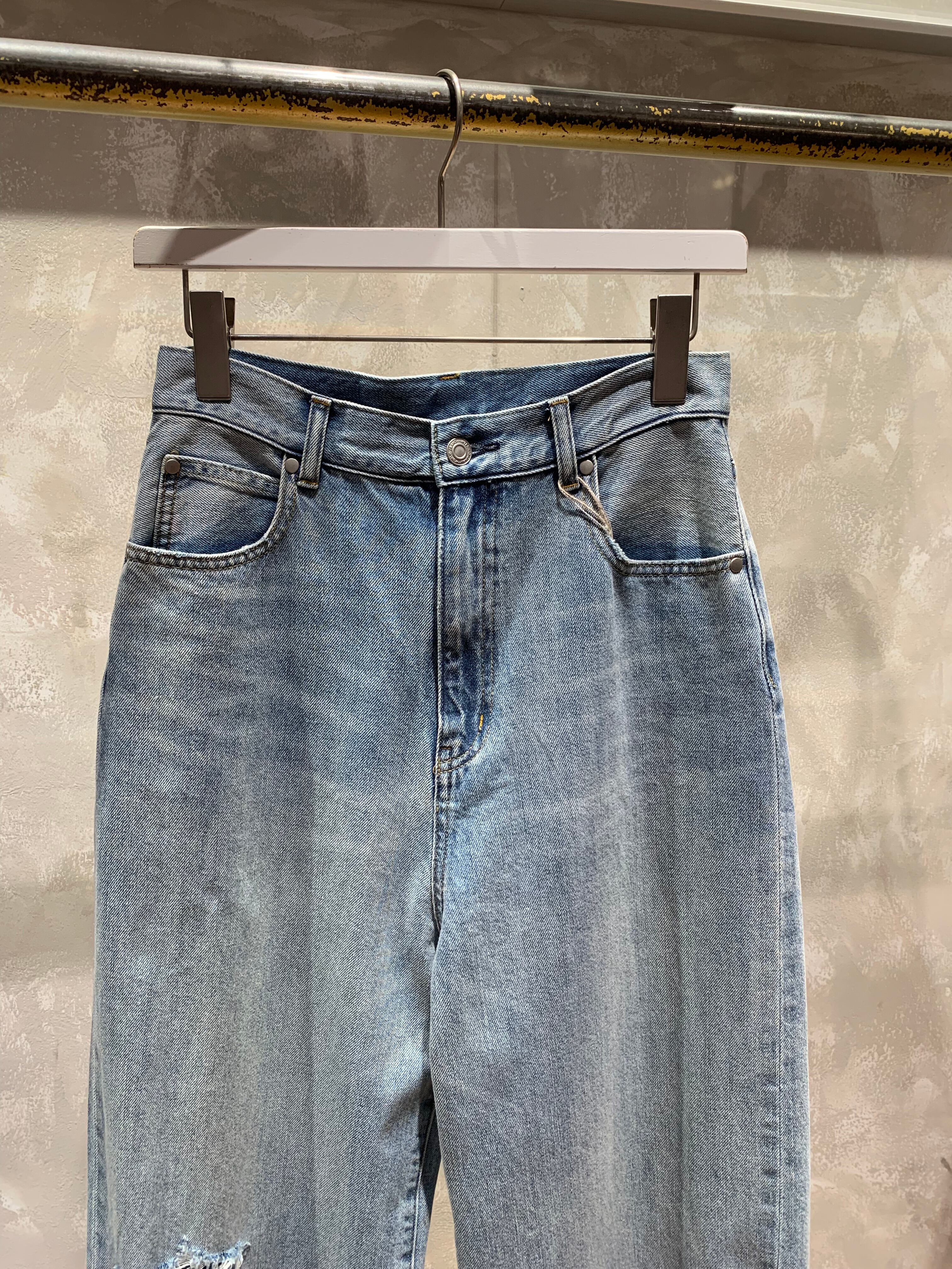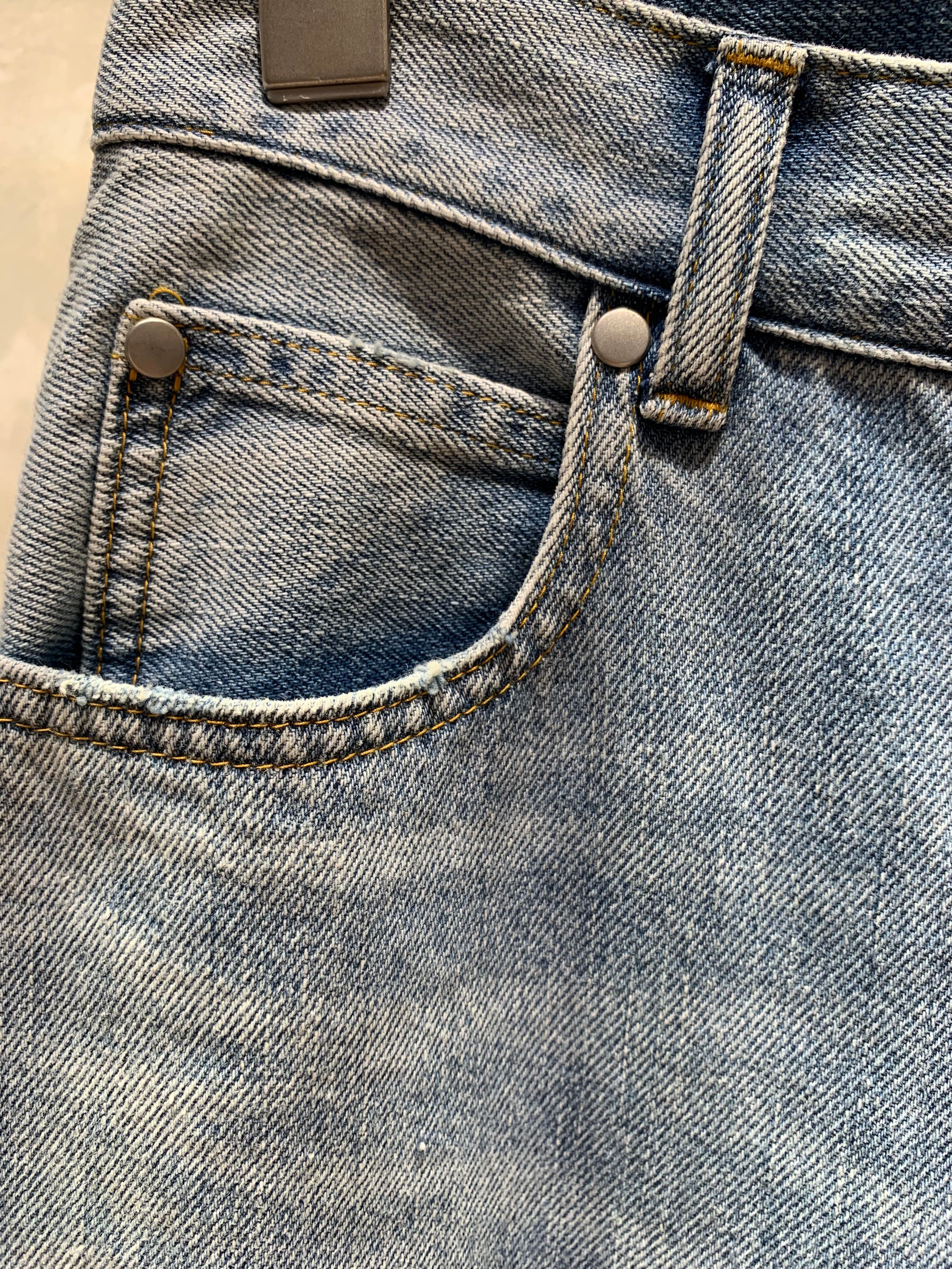 濃すぎず薄すぎず、こだわりぬいた絶妙なデニムカラー!程よい厚みの軽くて柔らかな11ozのためシーズンレスでお使いいただけます◎ワイドめのシルエットですがすっきりとした印象。加工やクラッシュにもこだわった一枚!あえてワンサイズ大きいサイズを選んでベルトで締めて履いていただくのもオススメです。