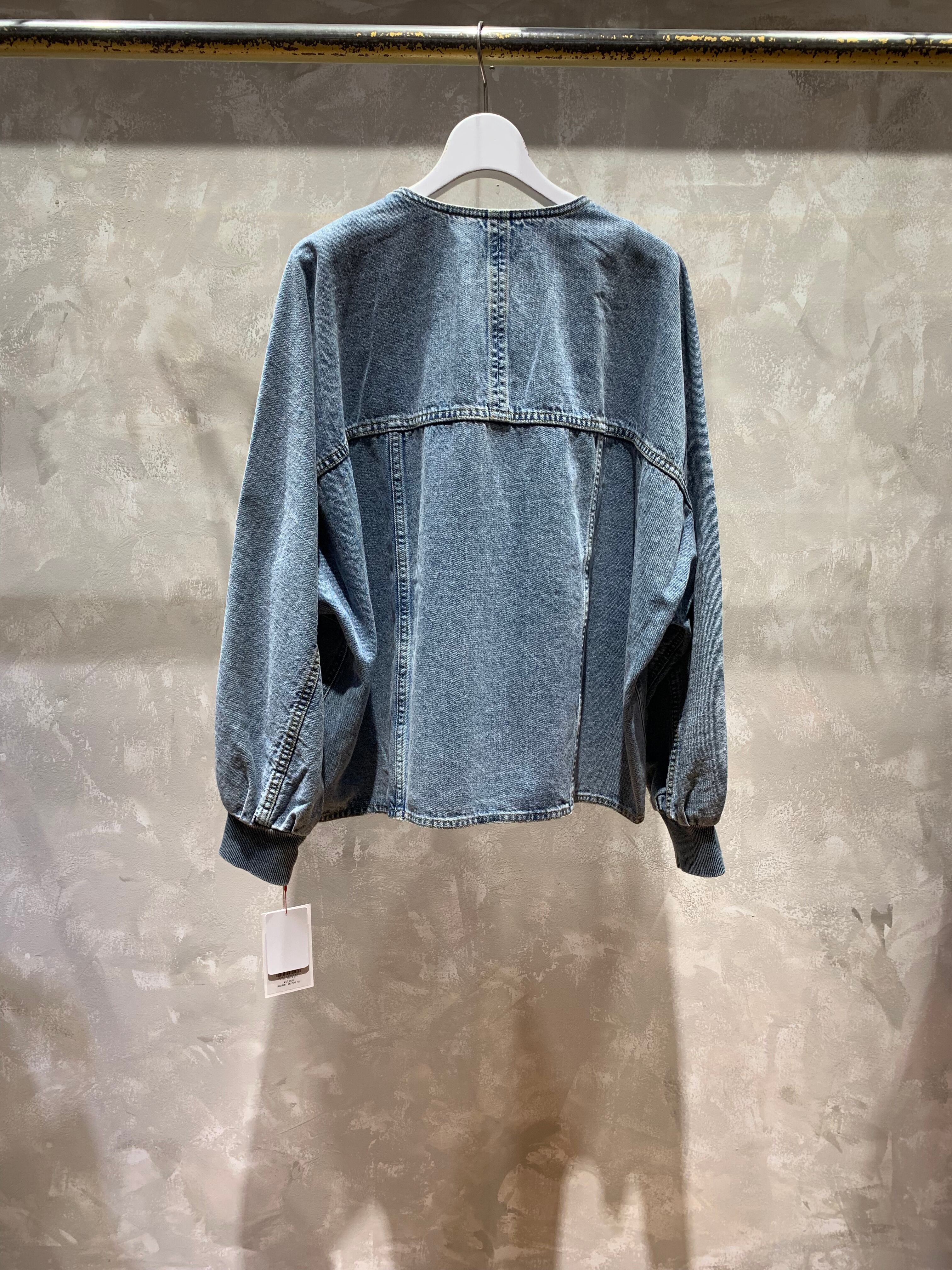 ふんわりとしたシルエットの袖でありながら、深くあいたVネックがすっきりと見せてくれます。Tシャツやタートルネックニットの上にさらっと羽織れる一枚です。
