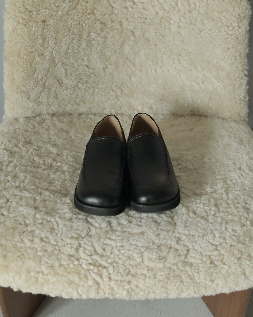 少しラウンドさせたトゥラインと程良いボリューム感がポイントのエコレザーローファー。シンプルな中に、さりげなくステッチを効かせたフロントデザインがポイント。ボリュームがあり、歩きやすい低めのヒール。カジュアルにも綺麗目にも幅広く合わせやすいです。スカートやワンピーススタイルに、靴下と合わせたコーディネートももおすすめです。
