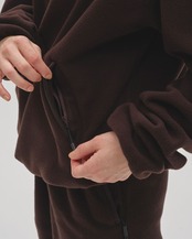 軽やかで柔らかなフリース生地を使用したプルオーバーとマフラーの2セット。パイピングやワンポイント刺繍、各パーツはボディと同色でまとめ、スタイリッシュな印象に仕上げました。アウターの中にもすっきり収まるシルエットで、冬のレイヤードスタイルや、同じ生地を使用したEasy Fleece Pantsとセットアップスタイルもおすすめです。