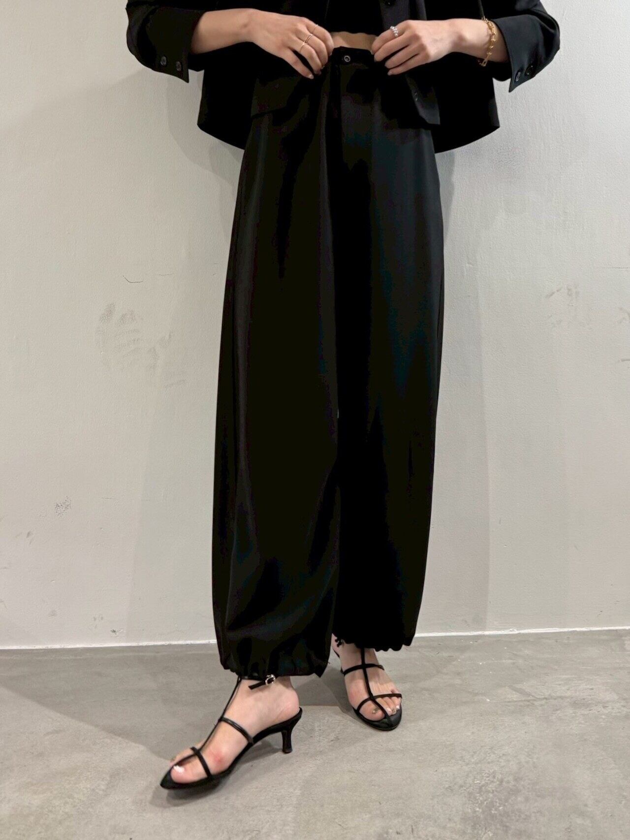 ウエストストッパーでサイズ調整も自由自在!同素材のトップスとセットアップで揃えれば、こなれたモードカジュアルスタイルが完成します。