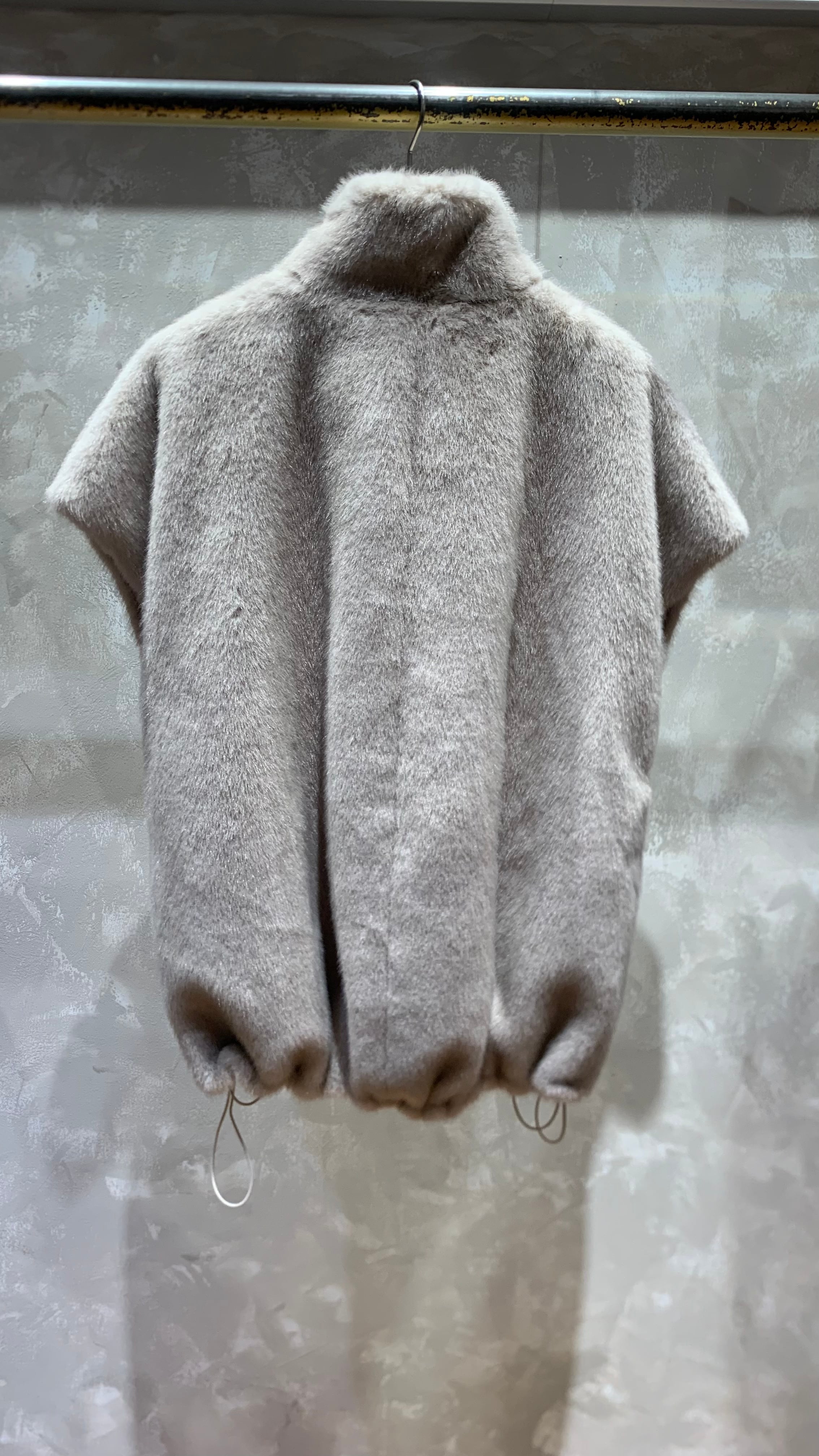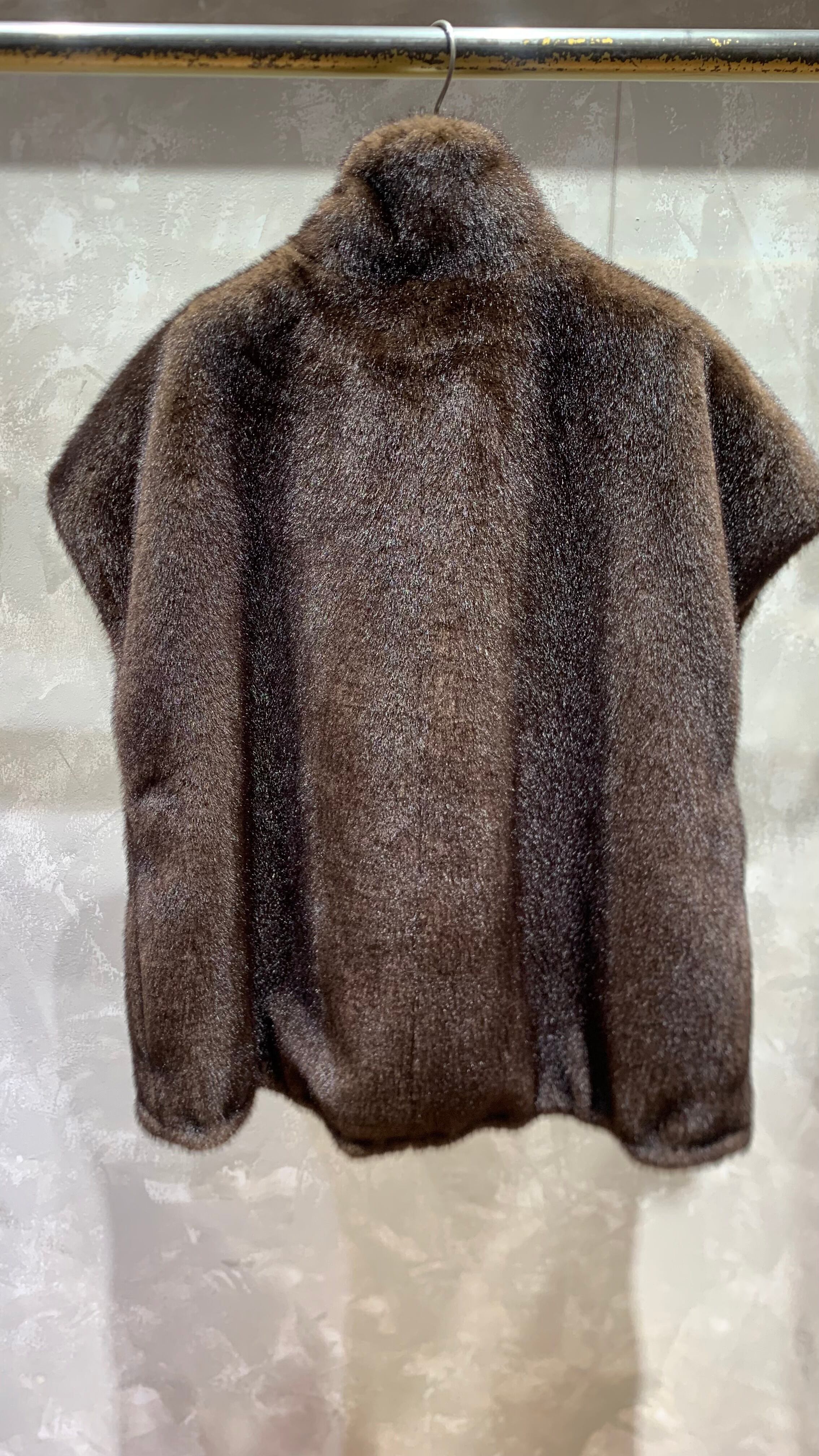ふわふわとした上質なフェイクファーを贅沢に使用したフレンチスリーブベスト。厚みのある素材感がリッチな雰囲気を演出し、やさしい肌触りで着心地も快適です。体のラインを拾わないゆったりとしたシルエットが抜け感を生み出し、羽織るだけで洗練されたスタイリングに。スカートやパンツ、ワンピースなど、どんなアイテムとも相性が良く、デイリーからお出かけシーンまで幅広く活躍します。シンプルなコーデにプラスするだけで季節感と華やかさを添える、ワードローブに加えたい一枚です。
