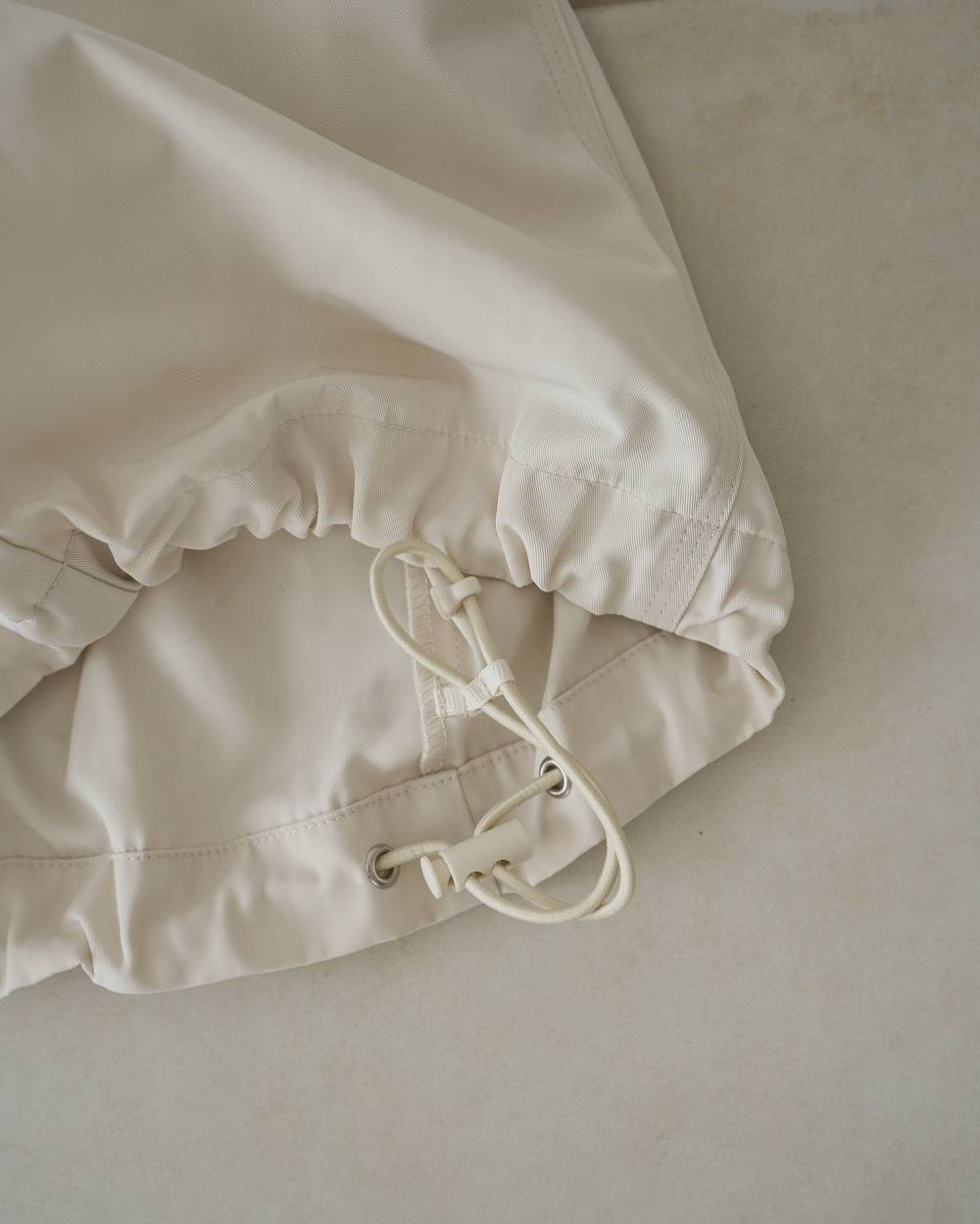 立体的な大きめのサイドポケットが印象的なドロストパンツ。筒の中心に切り替えを入れ3本ステッチを効かせ、ウエストコードは金属パーツをあしらい、カジュアルに仕上げています。程良く光沢した、しなやかな中肉のツイル素材と、ほんのりフォルムをキープできる独特な風合いが魅力。ゴム仕様のウエストで、ラフに履いていただけます。
