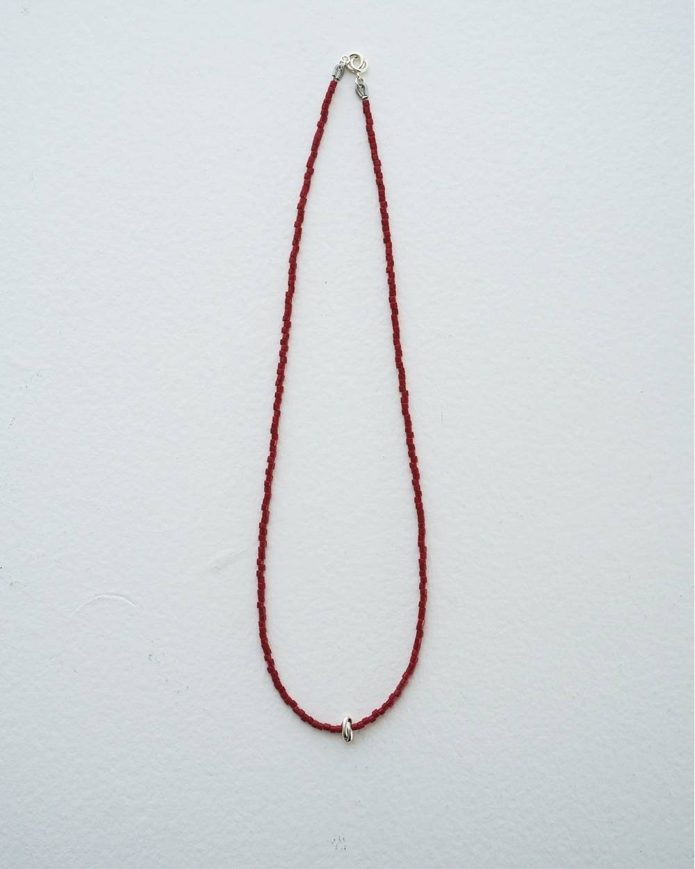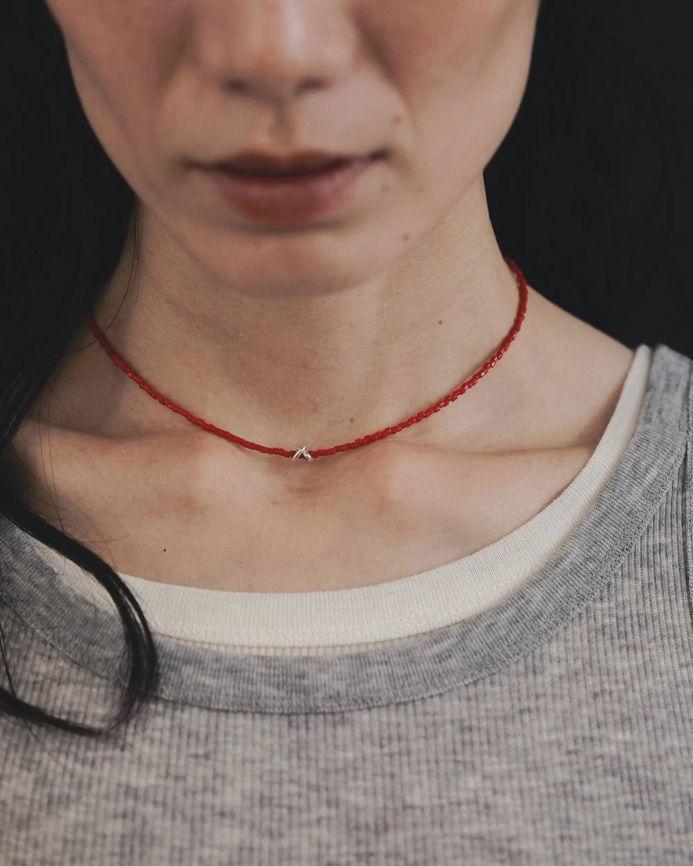 小粒のカラービーズとメタルパーツを組み合わせたショートネックレス。首元を華やかに見せてくれる鮮やかなレッドカラーのビーズを使用し、スタイリングのポイントになるネックレスです。
