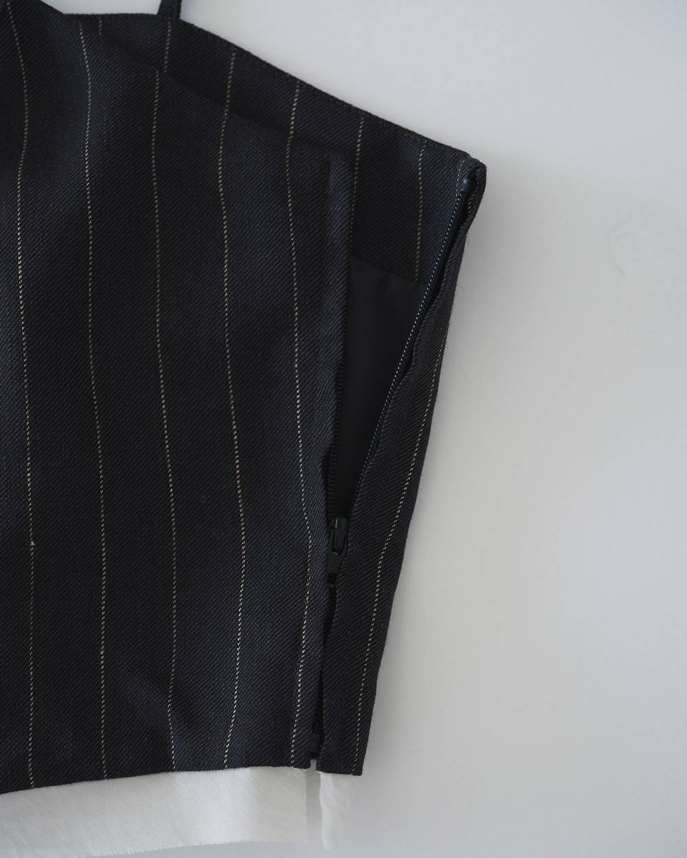 リネン素材を使用したキャミソール。オリジナルで織り上げた薄手のリネン素材で、無地のブラウンとストライプ柄のネイビーの2色展開です。裾の別布使いがポイントになり、一枚で着てもスタイリングに映えます。タンクトップやTシャツとレイヤードしたり、同素材のLinen Half PantsやLinen Tuck Pantsとセットアップで着ていただくのもおすすめです。