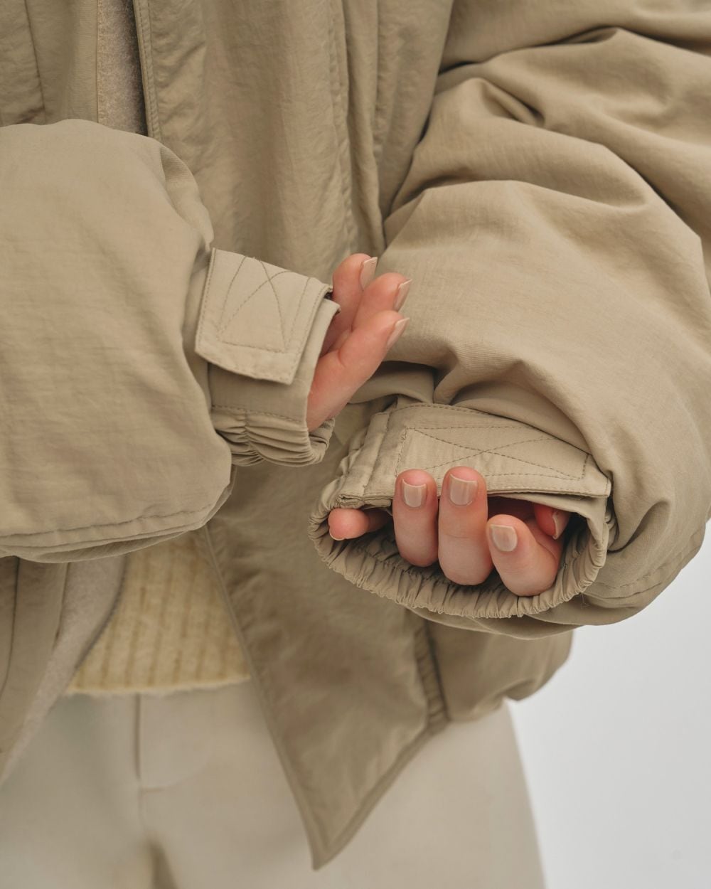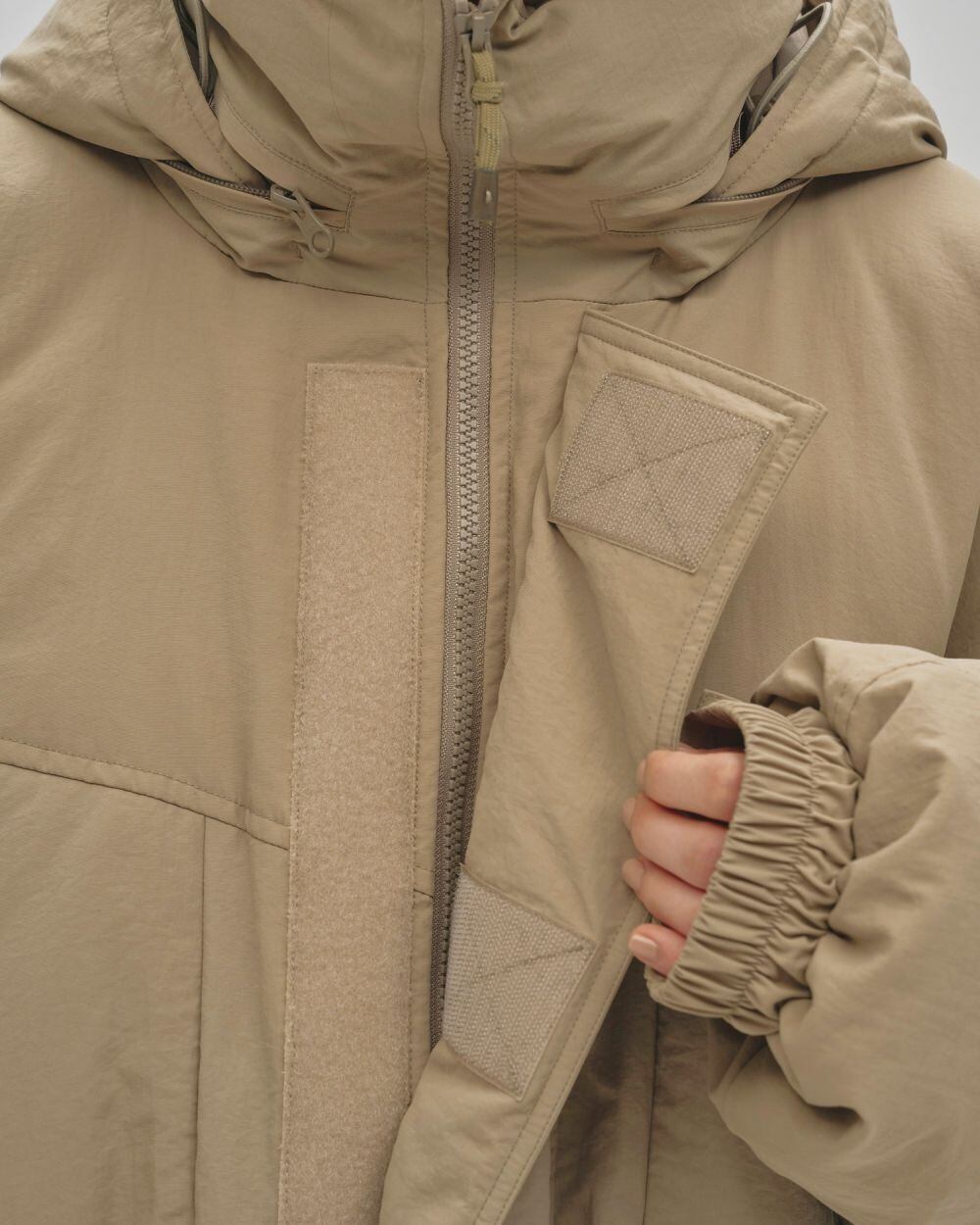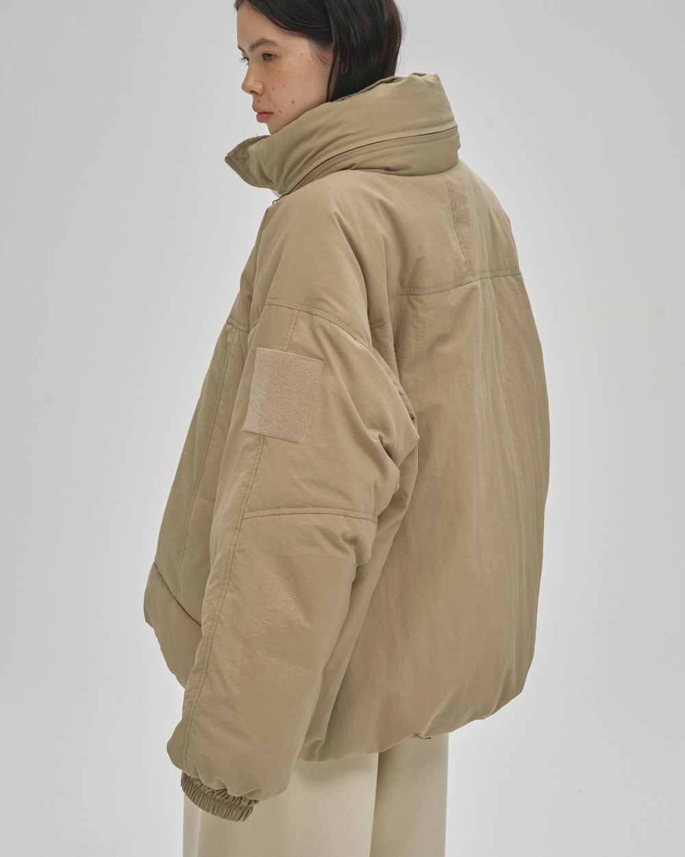 国内生地を使用した、ビッグシルエットが特徴のモンスターダウンジャケット。古着のような味わいのある風合いに、包み込まれるような暖かさと軽やかな着心地が魅力です。もともとはアメリカ軍の特殊部隊向けに開発されたアウターをルーツに持ち、ファスナーの引き手コードやマジックテープなど、細部にまでこだわりが詰まった一枚です。ヒップがすっぽり隠れる着丈で、小柄な方や自転車移動の多い方にも快適にご着用いただけます。