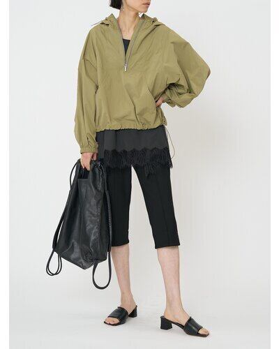 伸びの良いジョーゼットボンディングを使用した、シルエットにこだわったカプリパンツ。