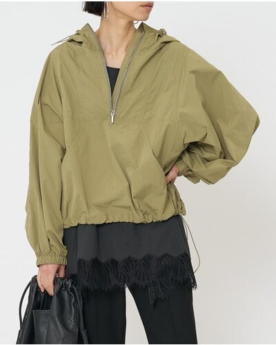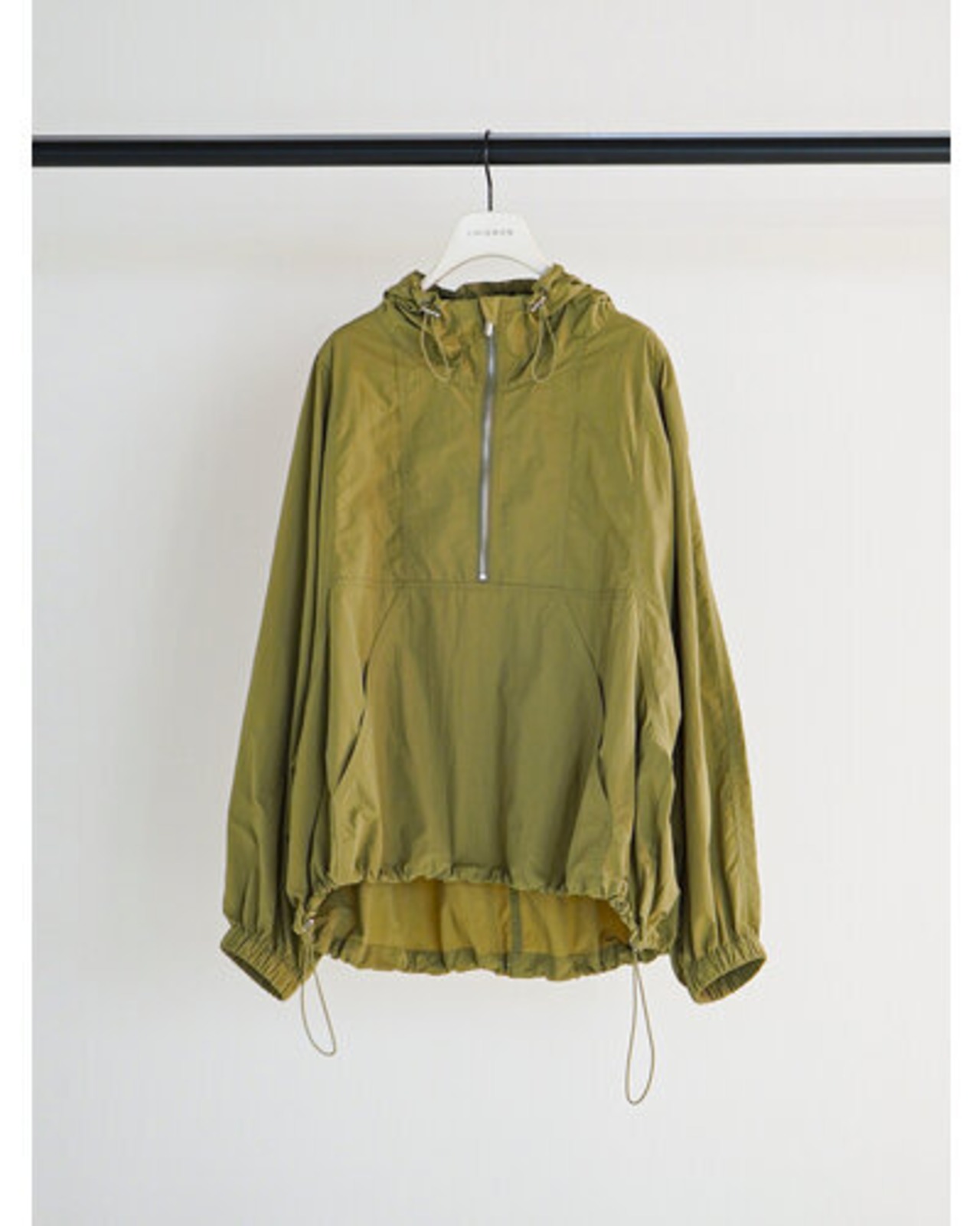 エアリーなナイロン素材で作るドルマンシルエットで、カジュアル過ぎず女性らしくやわらかに仕上げた今季注目のアノラックです。
