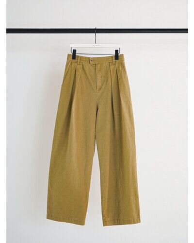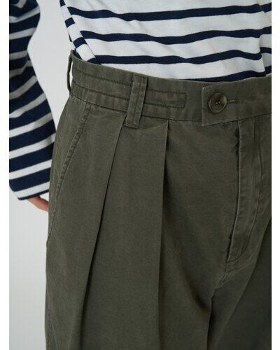 クリアな表面感のコットンツイルを使用し、製品バイオストーン加工を施したマルチユースなチノパンツ。