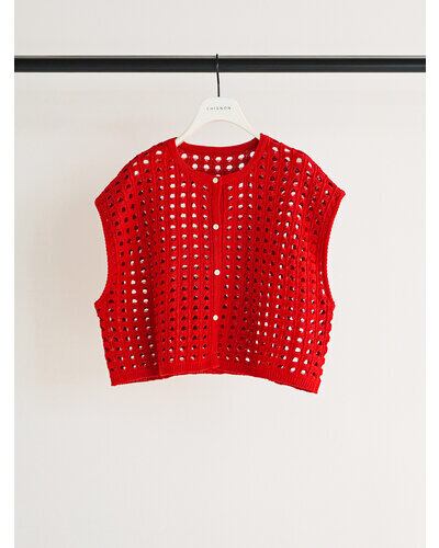 大きいメッシュ編みが可愛い、ボックスシルエットニットベスト。