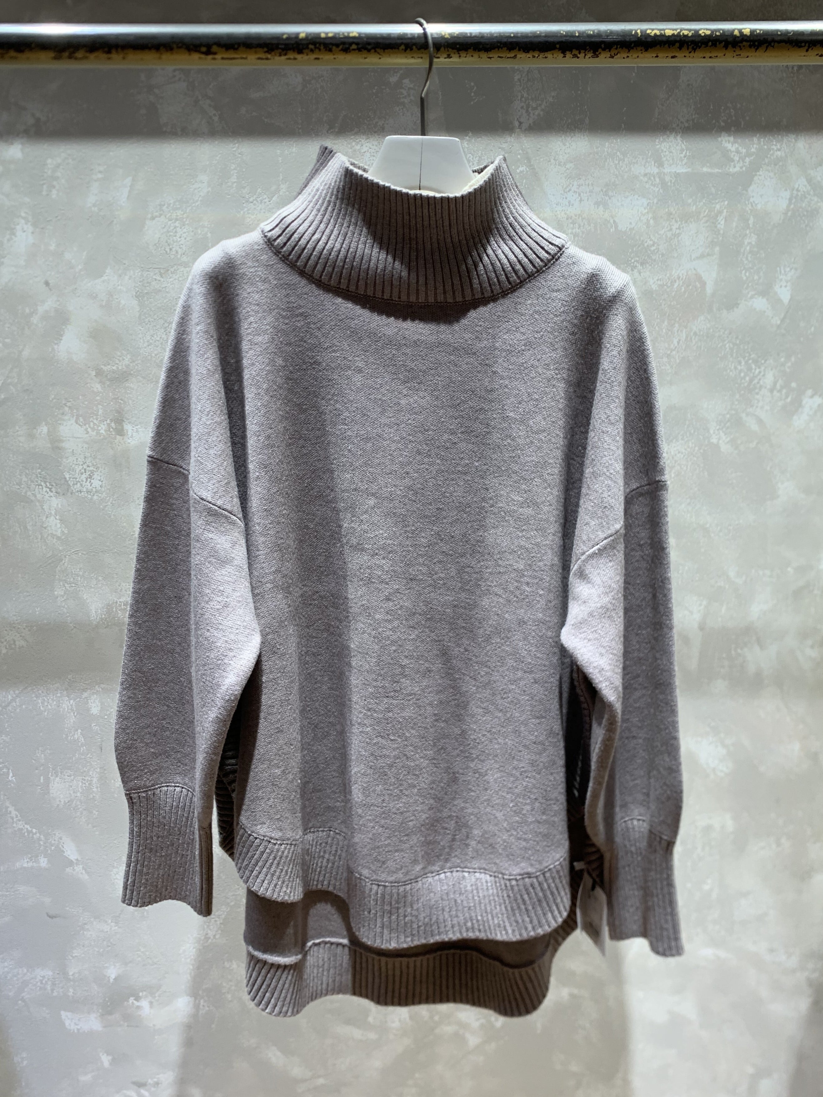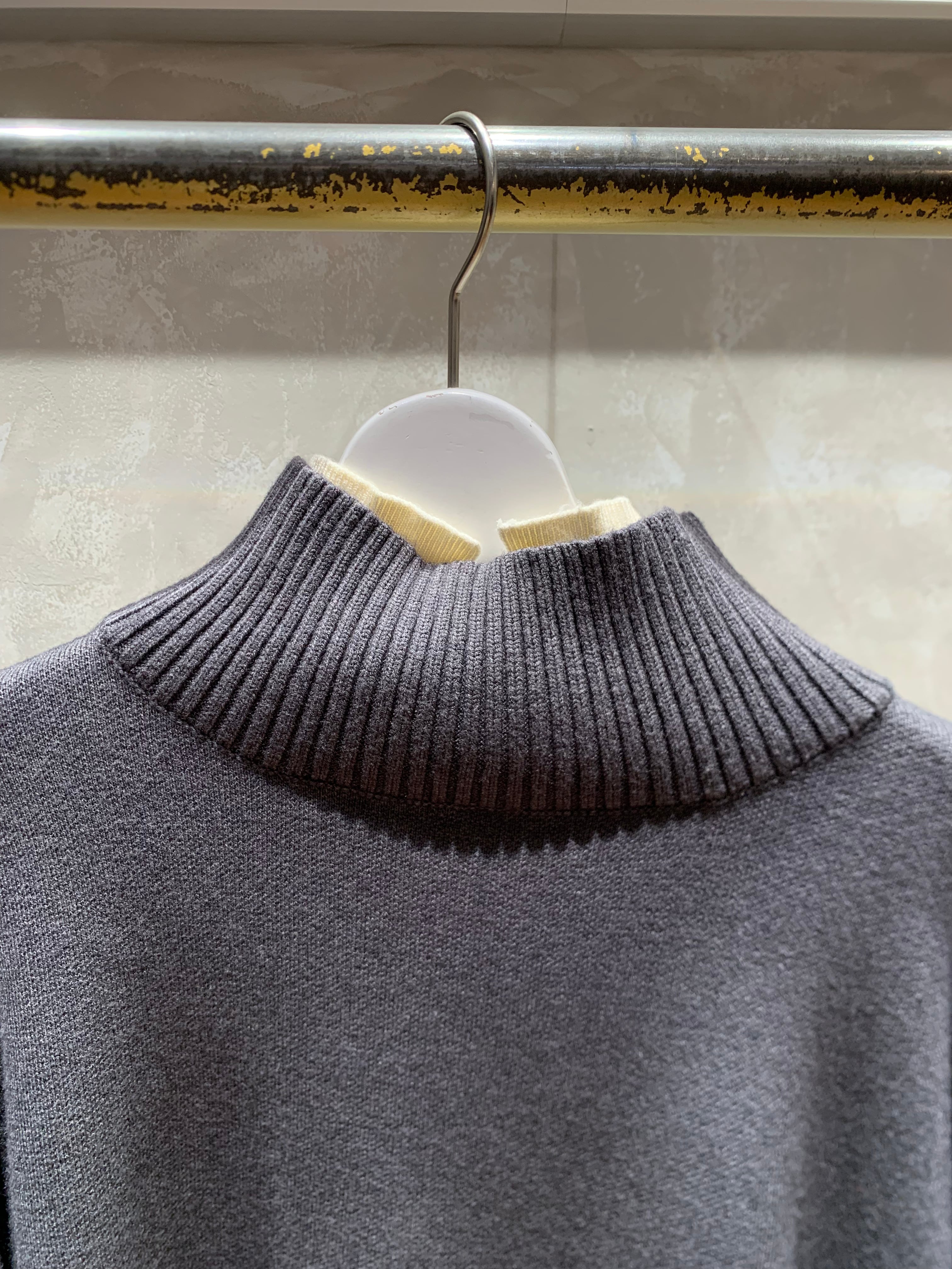 衿が配色になった二重タートルネックになっており、折り返すとシャツ衿のようになります。