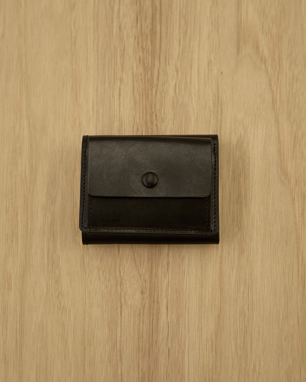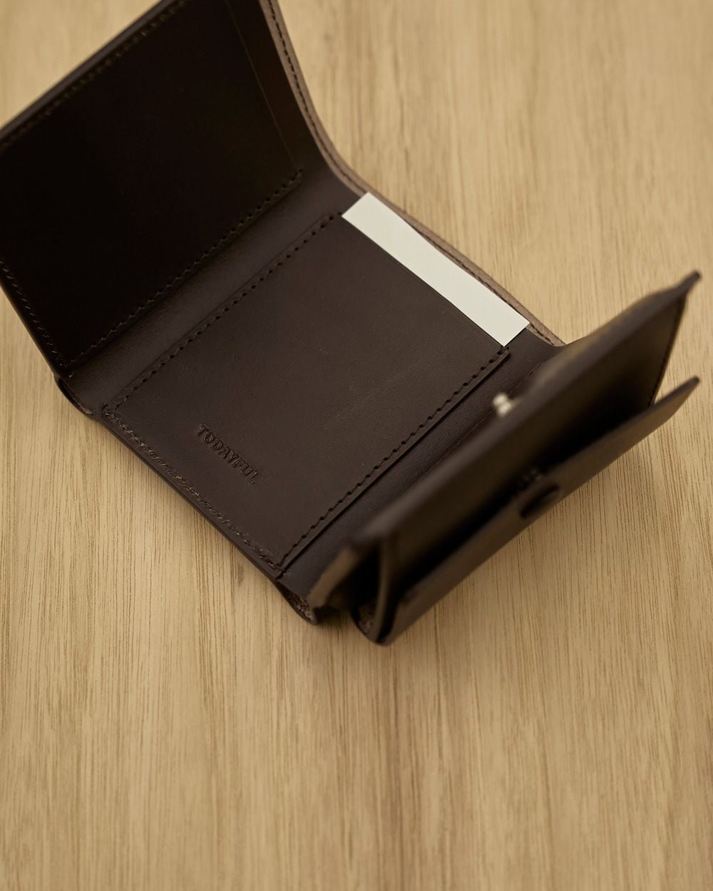 ヌメ革を使用したウォレット。カードや紙幣、コインをしっかり収容できるデザインで、ミニバッグにも収まるコンパクトなサイズ感が魅力。ヌメ革を使用しているため、革質や色味など経年変化をお楽しみいただけるアイテムです。