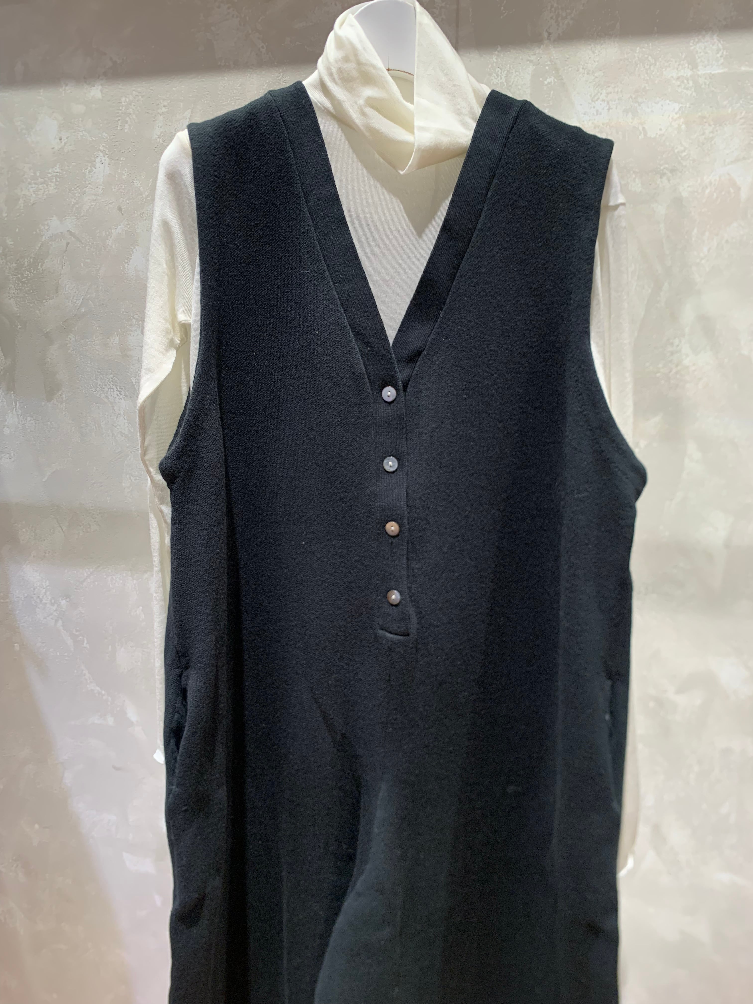 CLOCHEのニットサロペットです。ゆったりとしたサイズ感でリラックスな着心地。ボタンダウンのデザインがきちんとした印象を与えてくれます。厚手過ぎないニット素材でレイヤードもしやすく着ぶくれしません。ポケットもついていて機能性も抜群です。