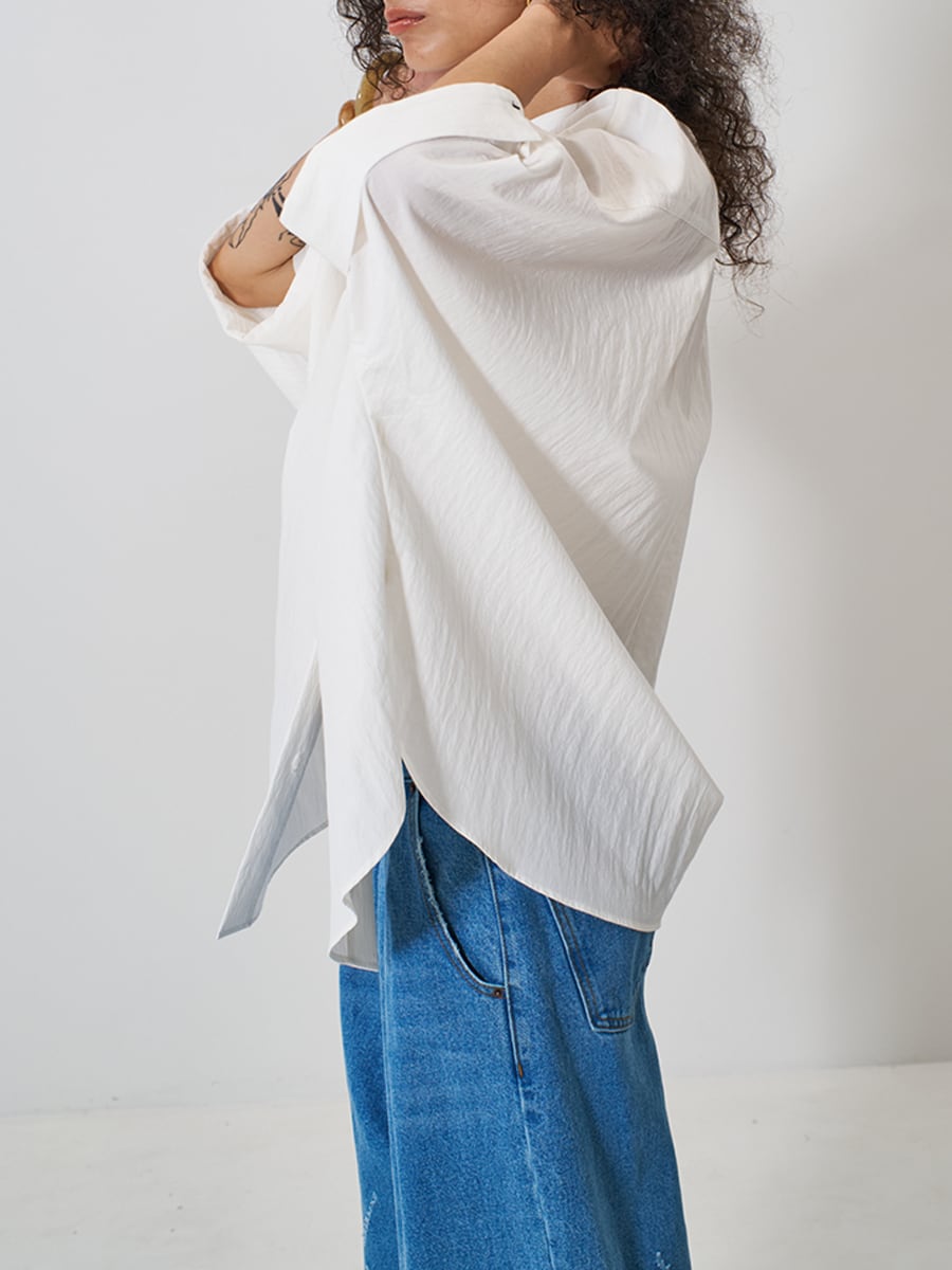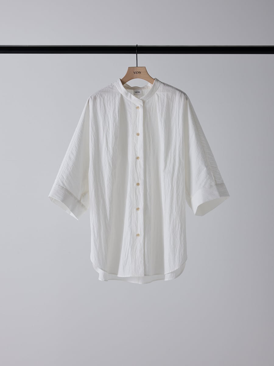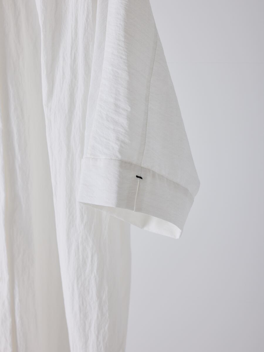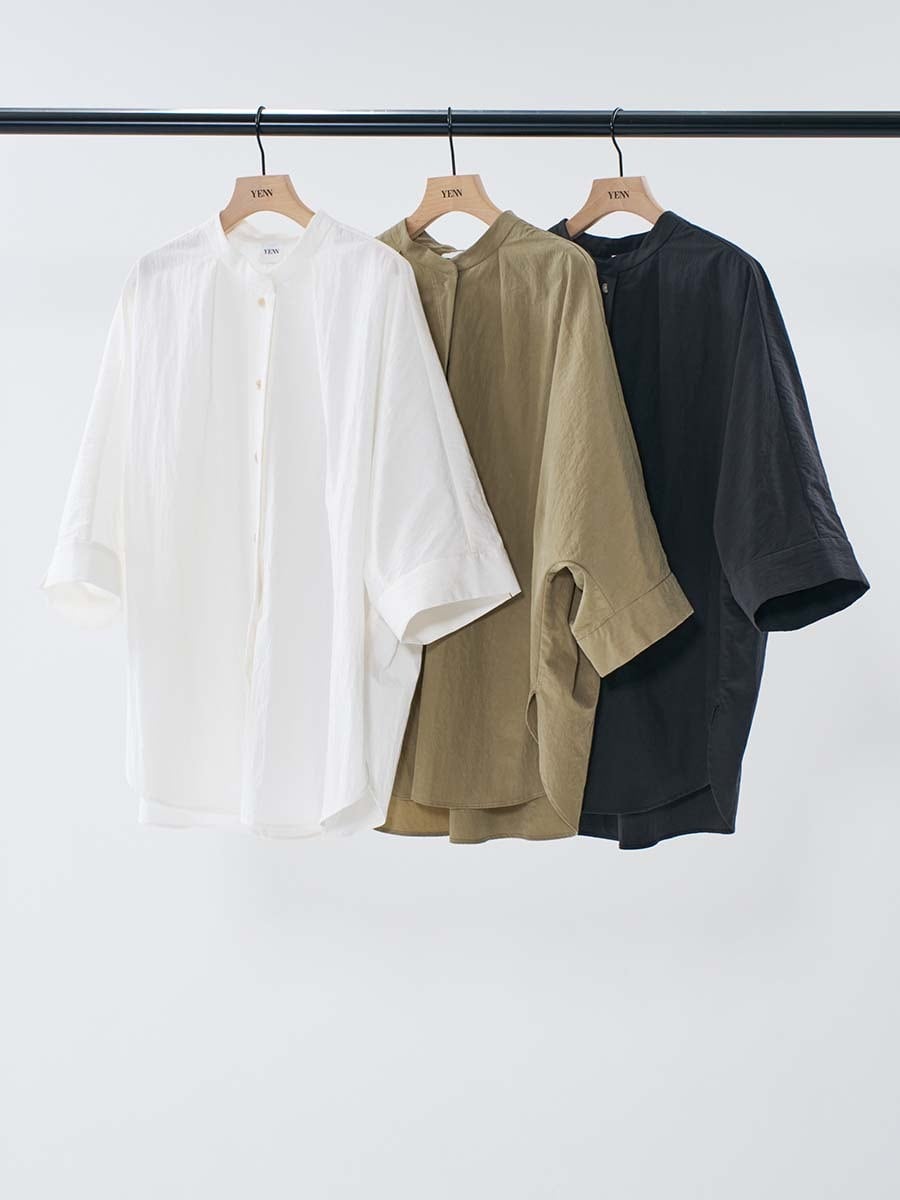 ハリのある素材で作るオーバーサイズのシャツは、体から浮くので風通しが良く、涼しく着用いただけます。