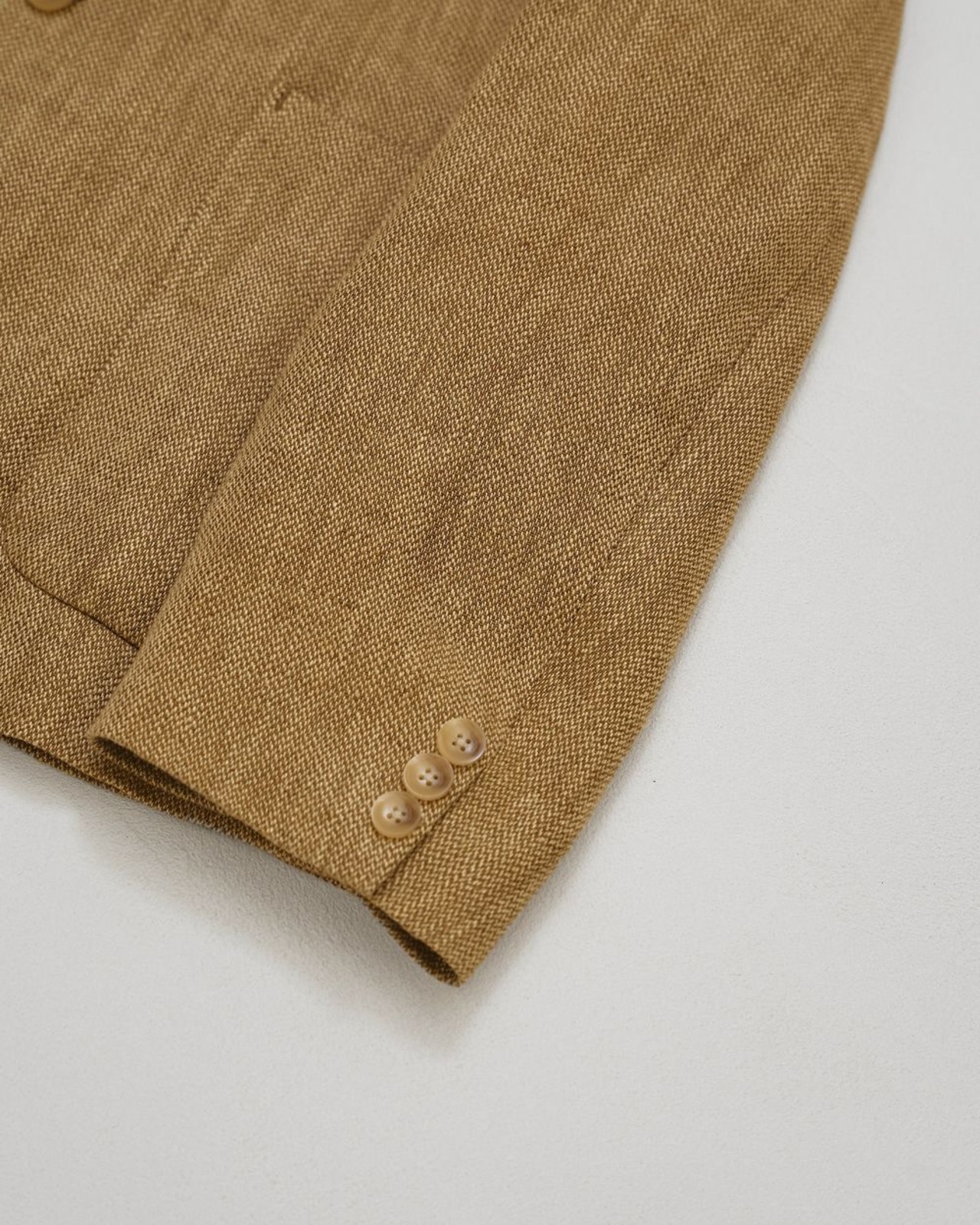 上質なリネン100%生地を使用し、オリジナルカラーに染めたジャケット。自然な張りや艶感、奥行きのある色味が表情豊かに映える一枚です。TODAYFULらしいオーバーサイズのシルエットで仕上げ、マニッシュなムードを漂わせながらもラフに羽織れるデザイン。同じ生地を使用したLinen Americansleeve Topsと合わせたセットアップスタイルもおすすめです。