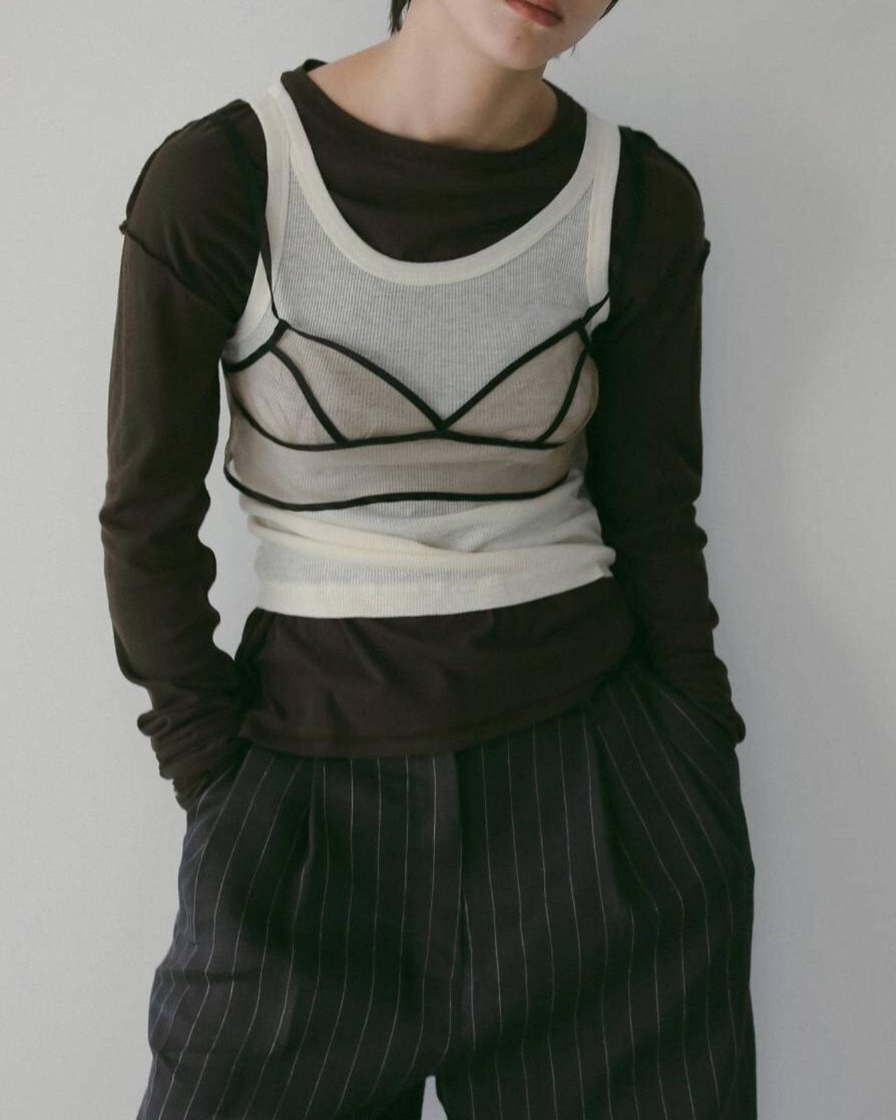 肌馴染みの良い、柔らかなシアーカットソー素材を使用したロングTシャツ。コンパクトなシルエットで、インナーとしても使いやすい一枚です。ほどよい透け感が、スタイリングに軽やかな表情をプラス。色違いを重ねたレイヤードや、タンクトップやビスチェを合わせたモードな着こなしもおすすめです。