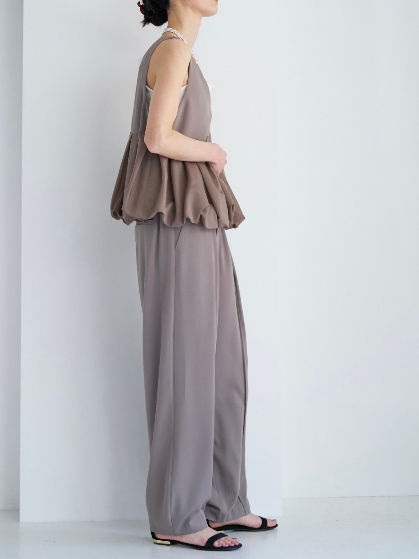 バルーン部分は光沢感のあるシアー素材を使用して軽さを出しています。