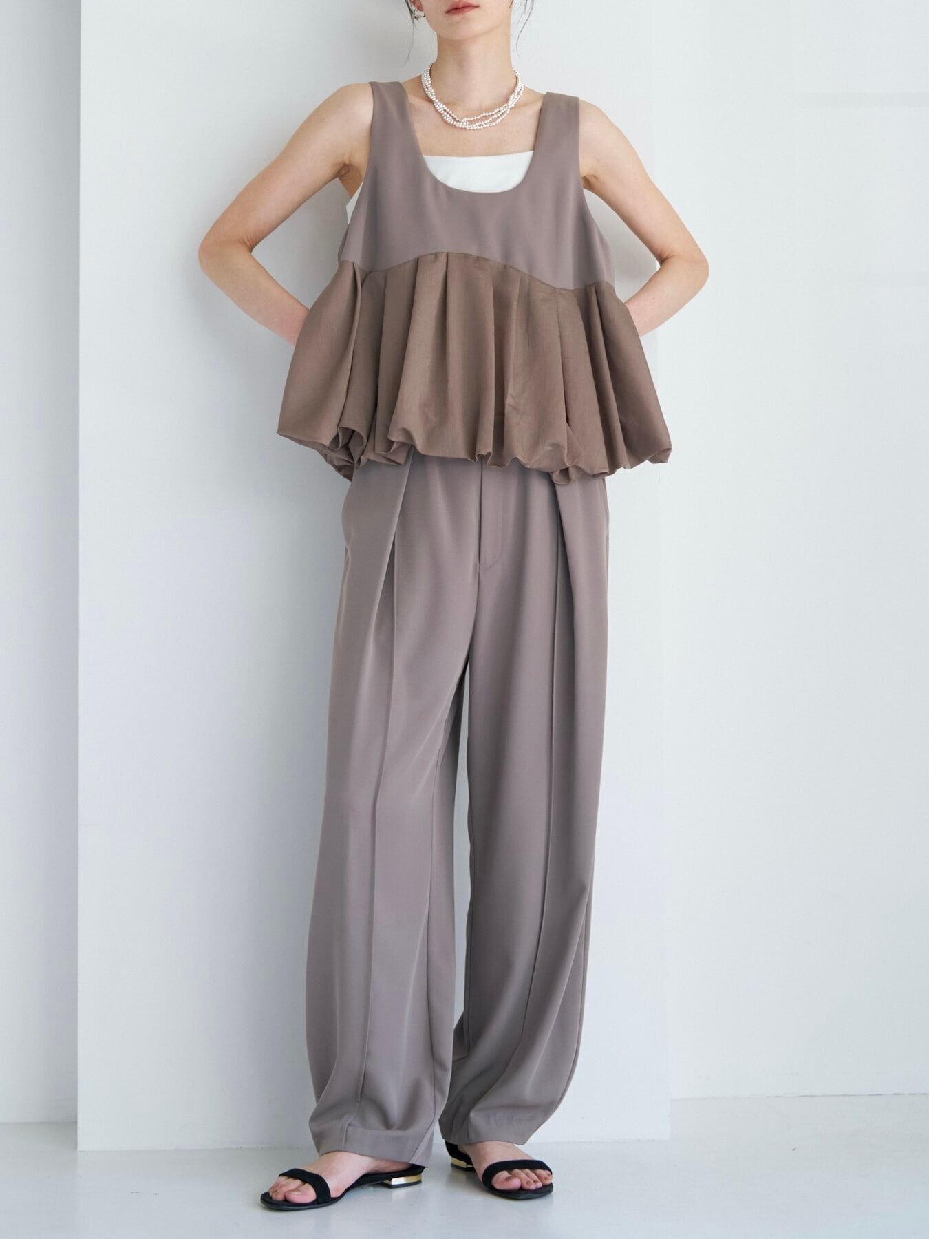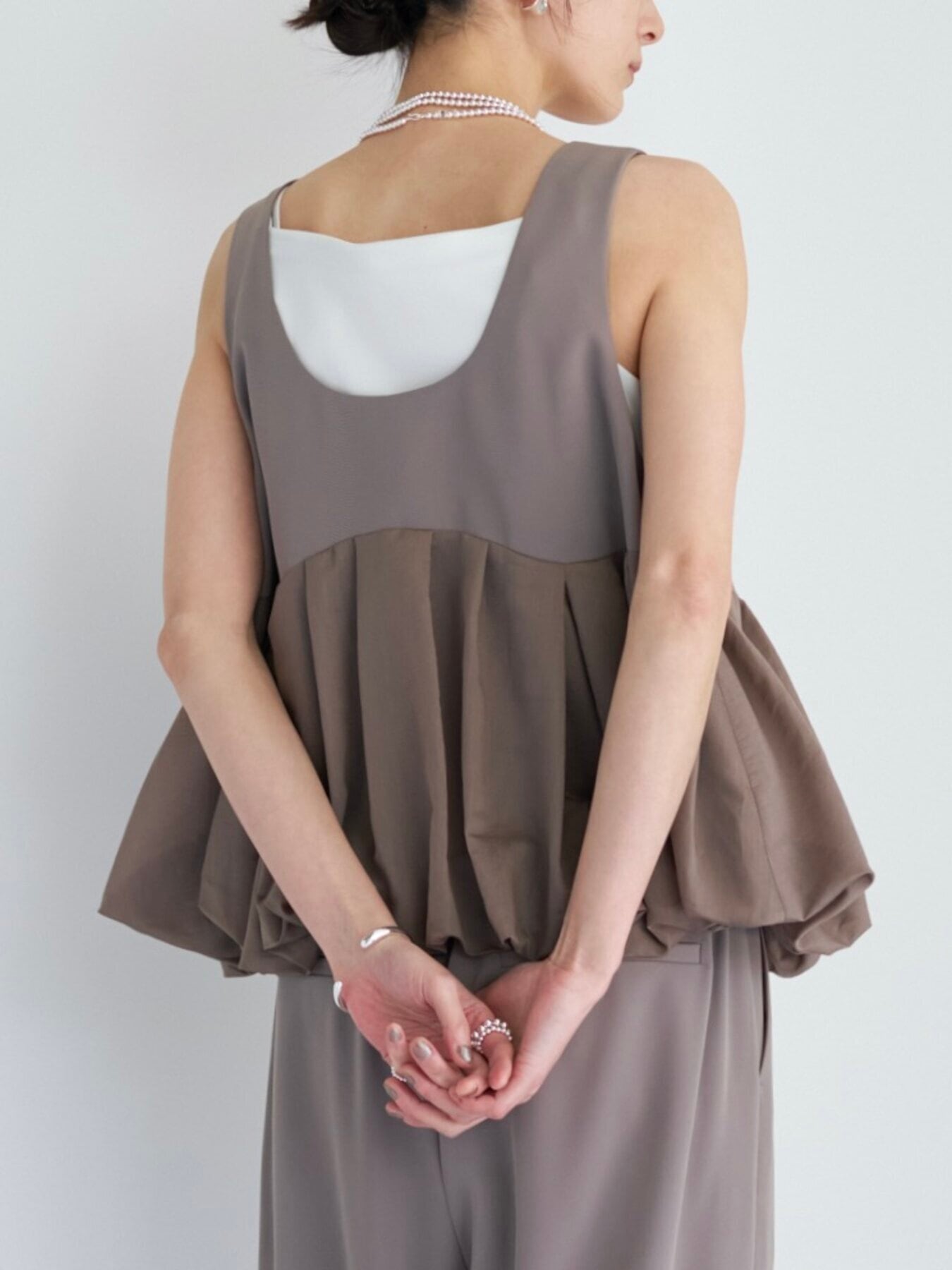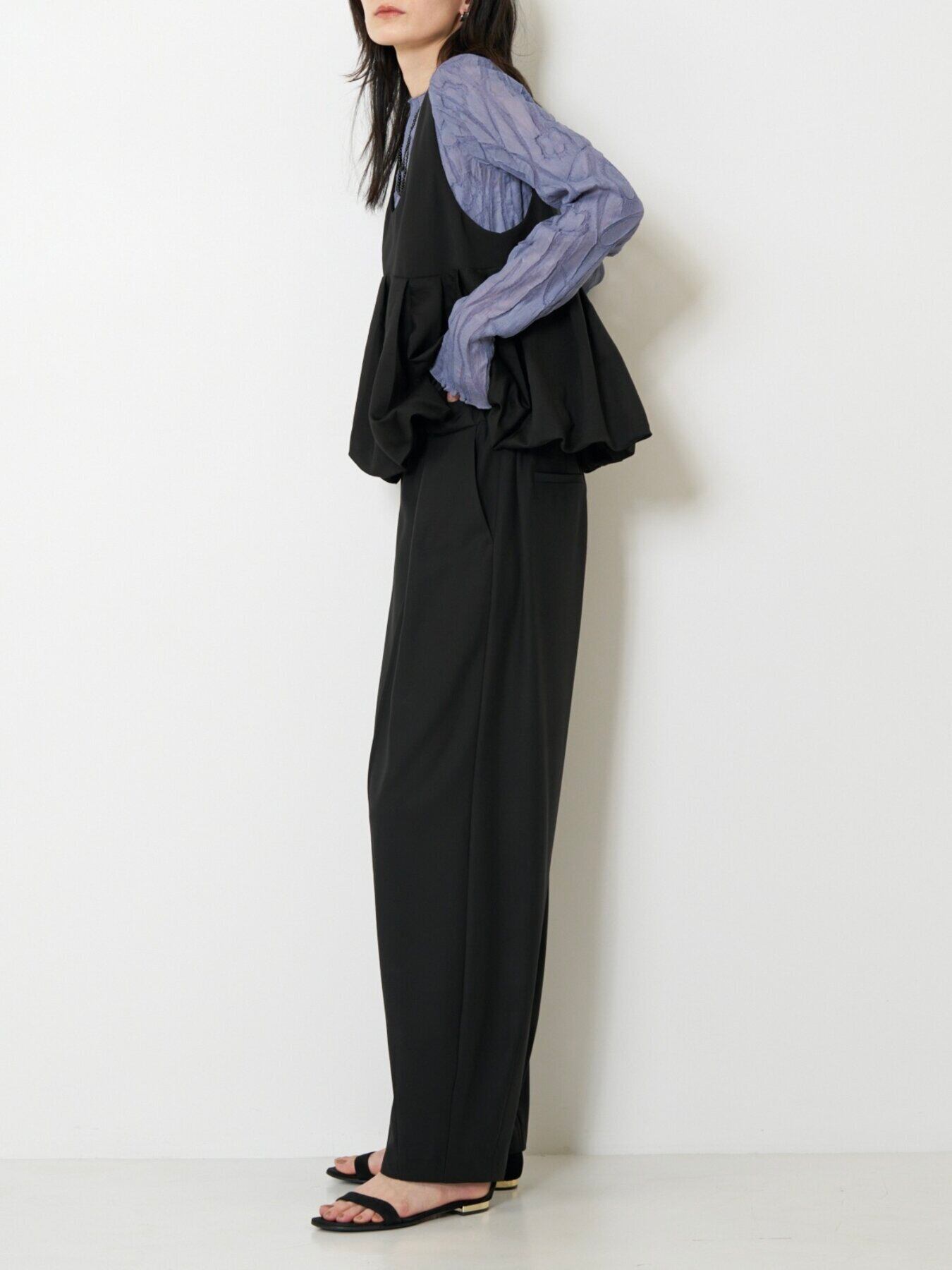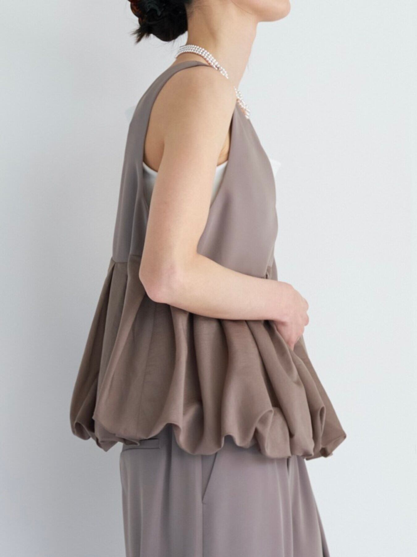 ミニマルなトップ部分からつながる、立体的でドラマティックなバルーンヘム。