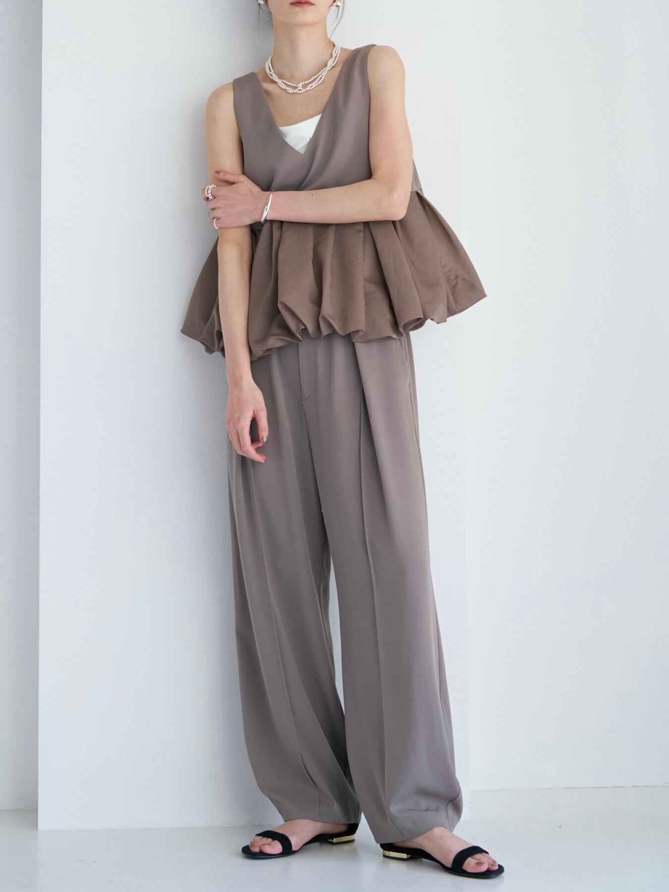 フェミニンでありながらエッジの効いた、今季らしいニュアンスビスチェです。
