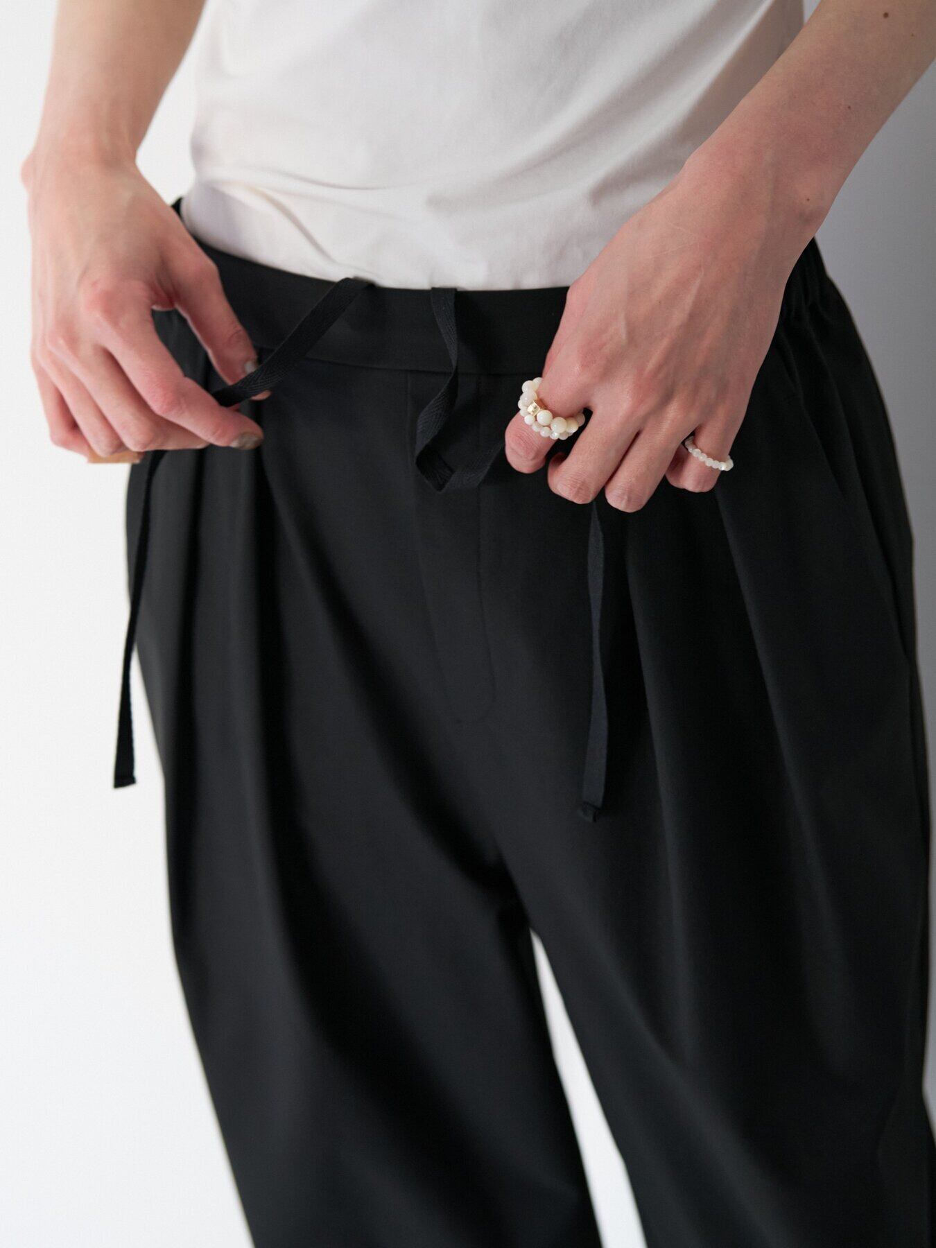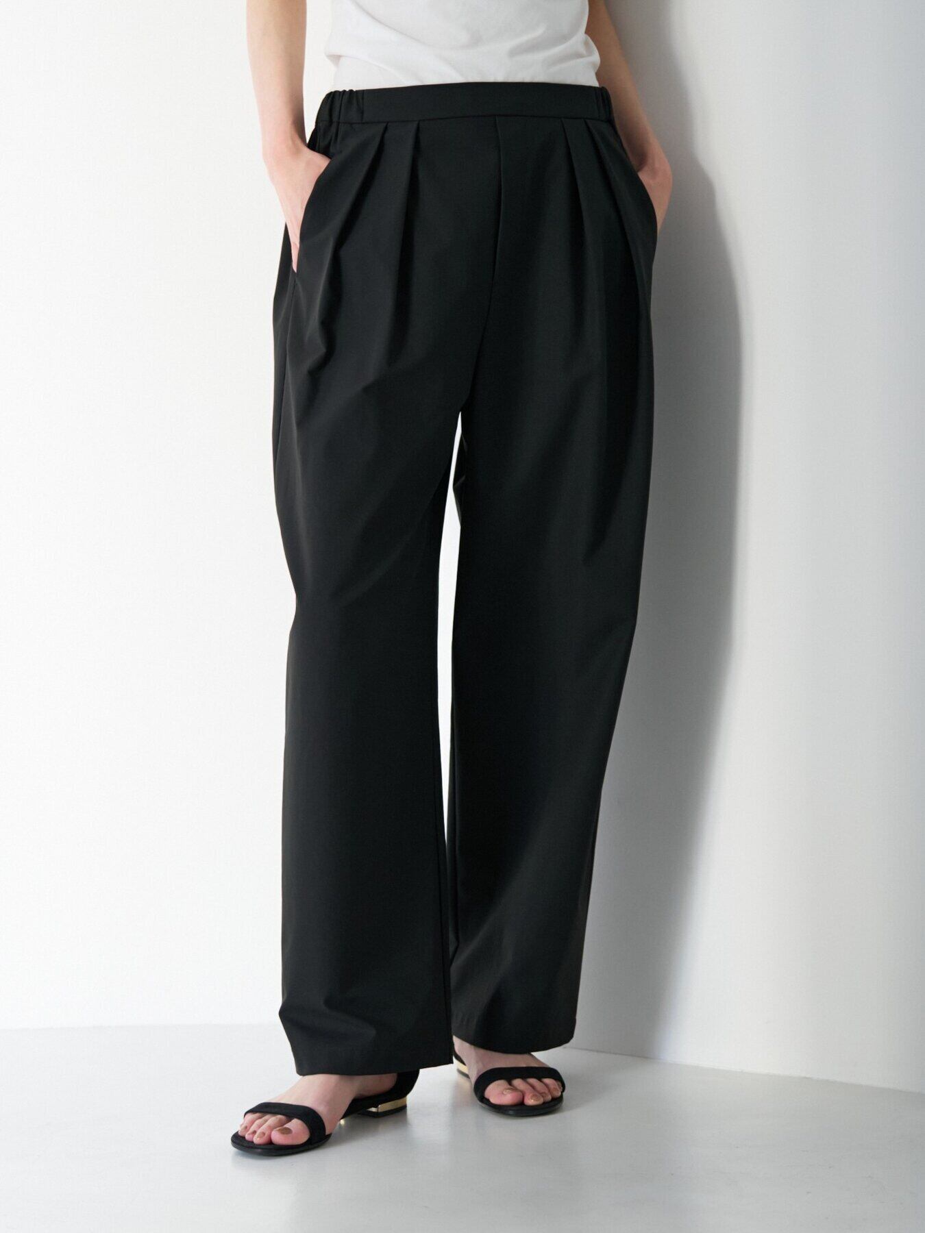 フロントにはタックを施し、程よくゆとりのあるワイドシルエットに。