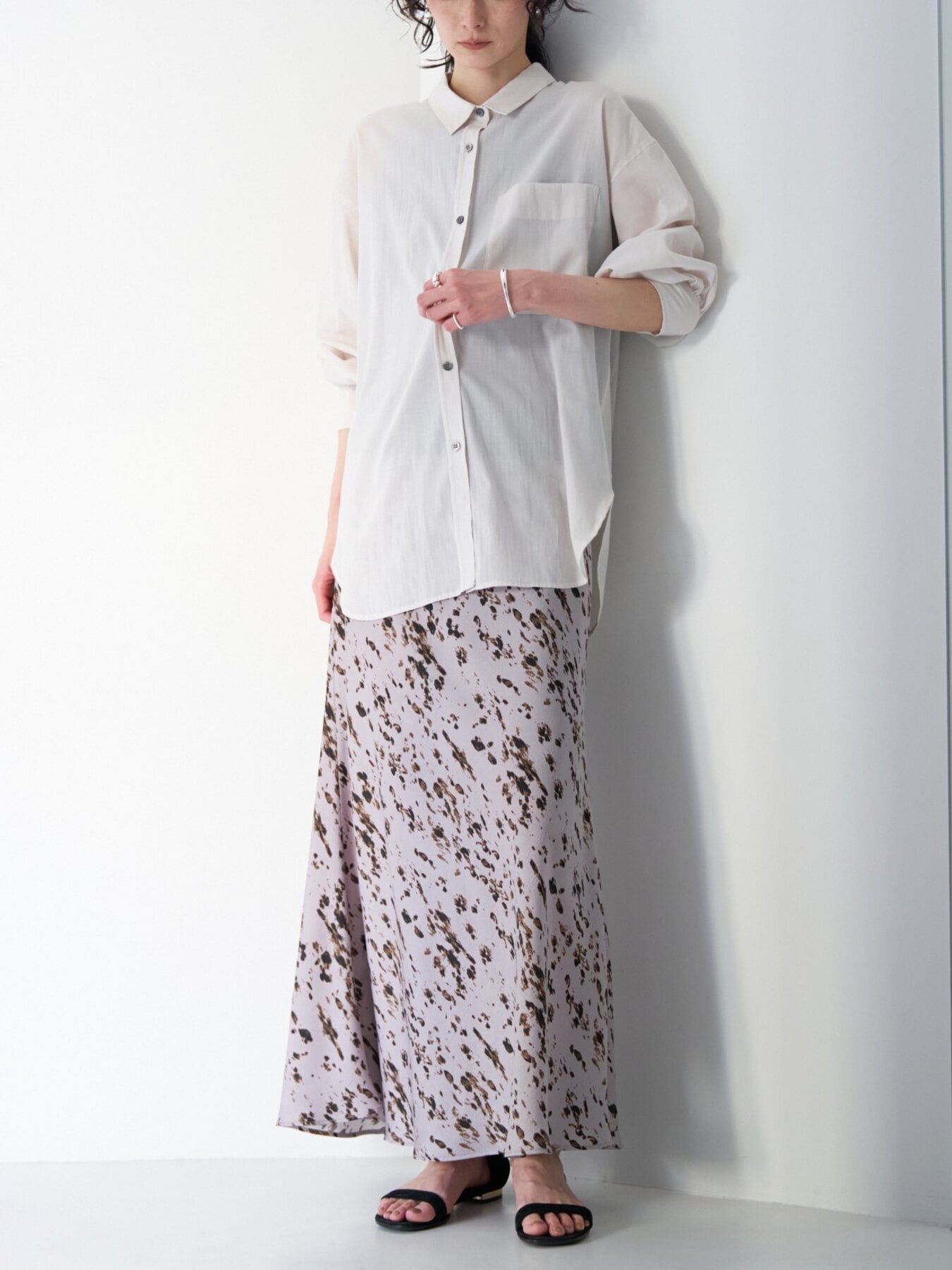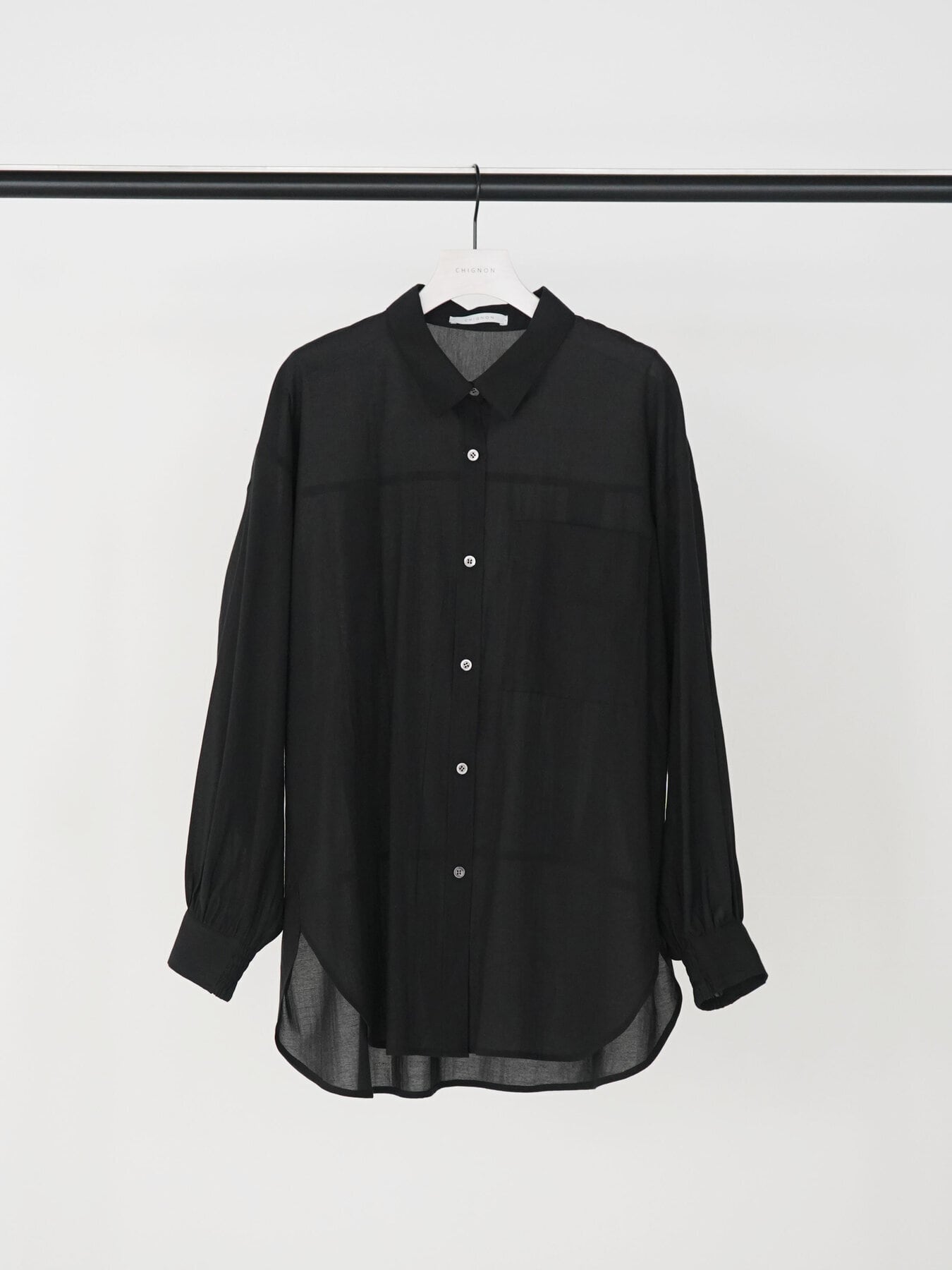 ほんのり透け感のあるシアー素材を使用した、軽やかなオーバーサイズシャツ。