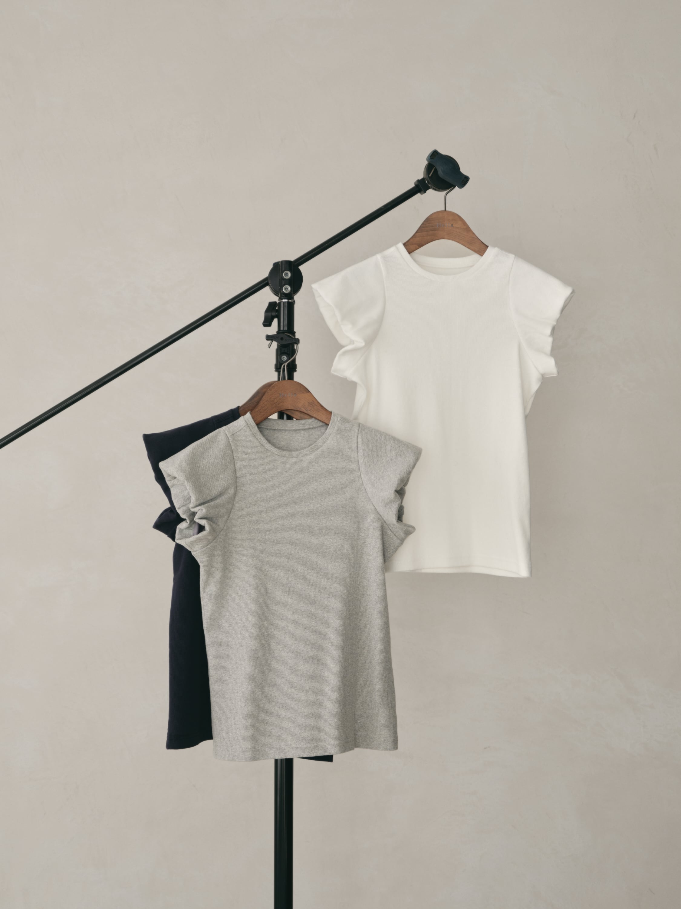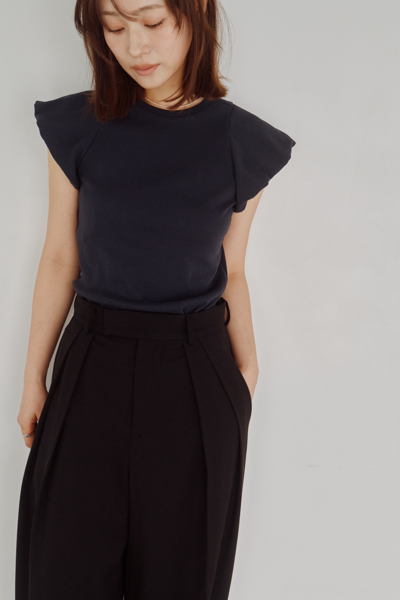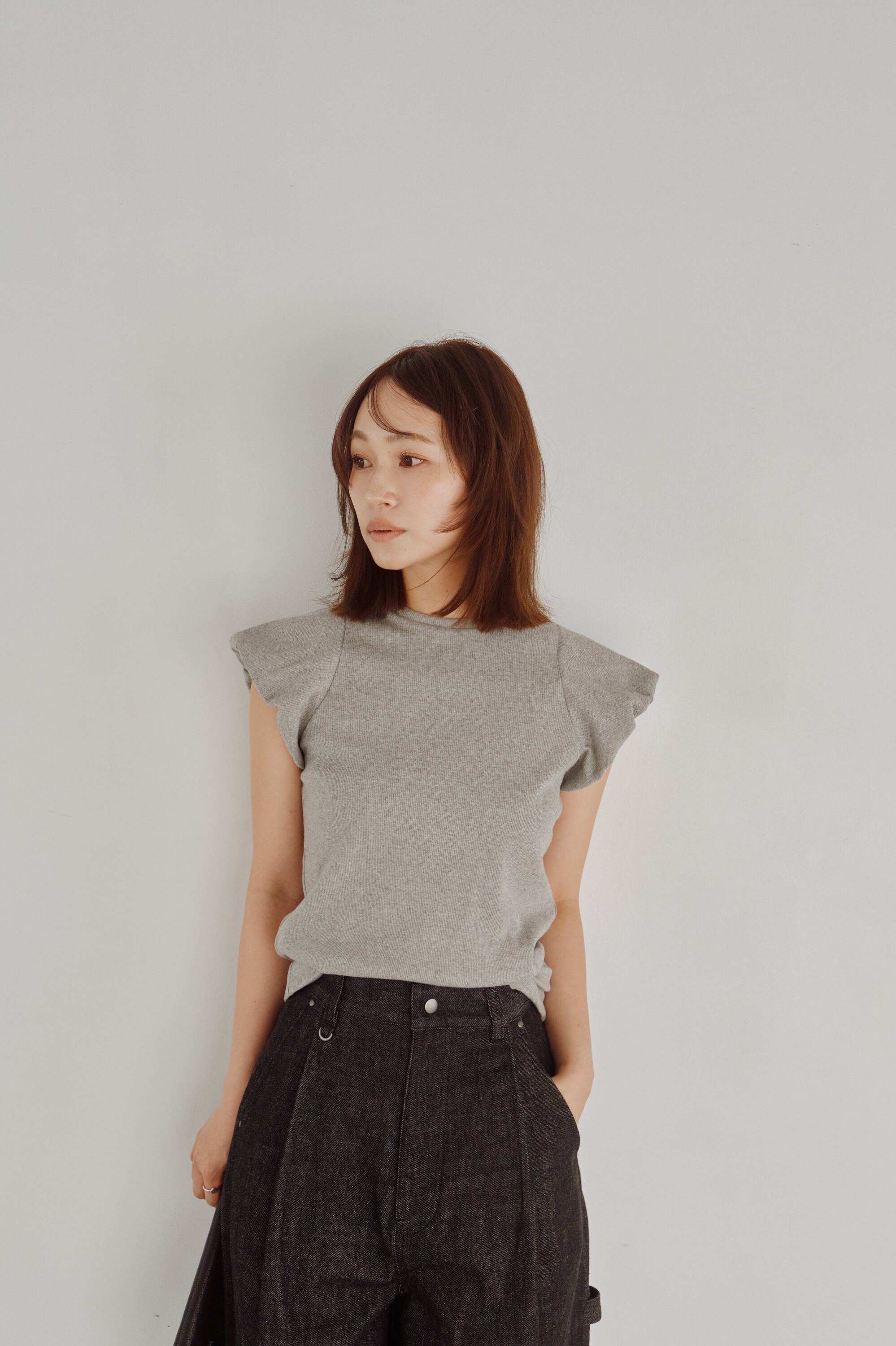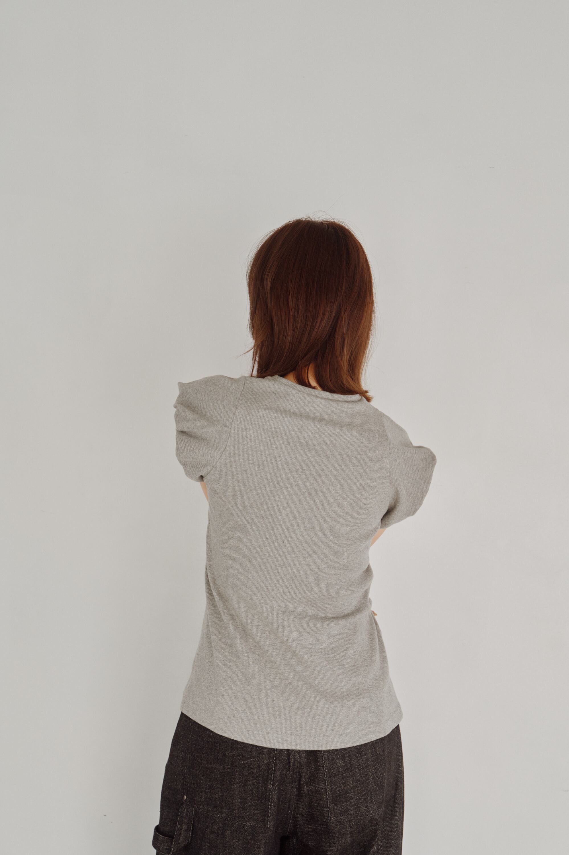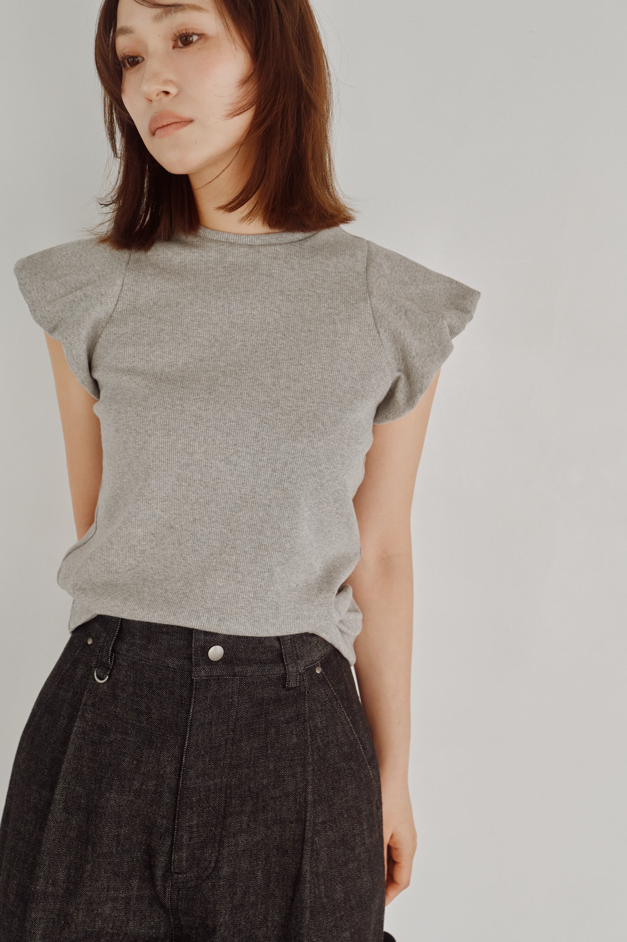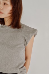 立体的に仕上げたパフスリーブが、さりげない存在感を添えるリブトップス。