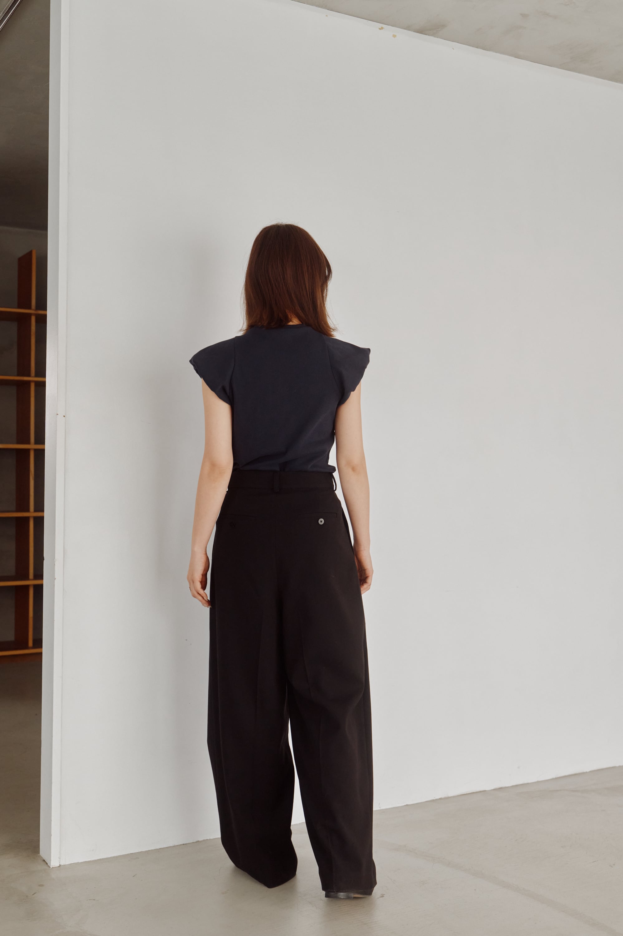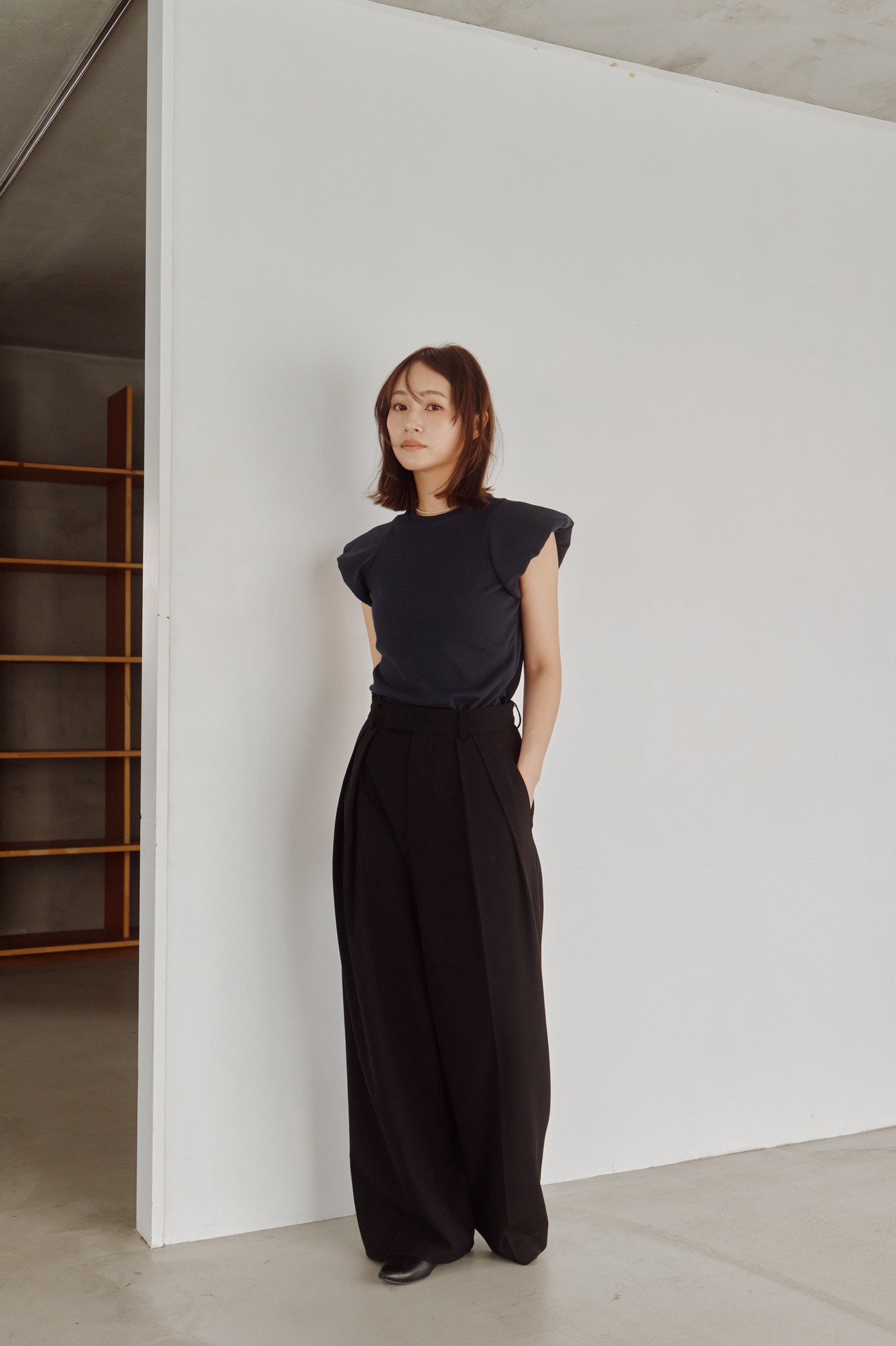 肩にほんのりボリュームを持たせることで、シンプルなスタイリングにも自然な奥行きをプラス。