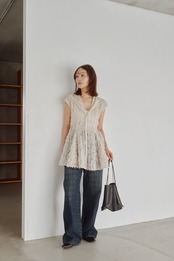 ウエストから自然に広がるペプラムシルエットで、甘さを抑えたバランスに仕上げました。