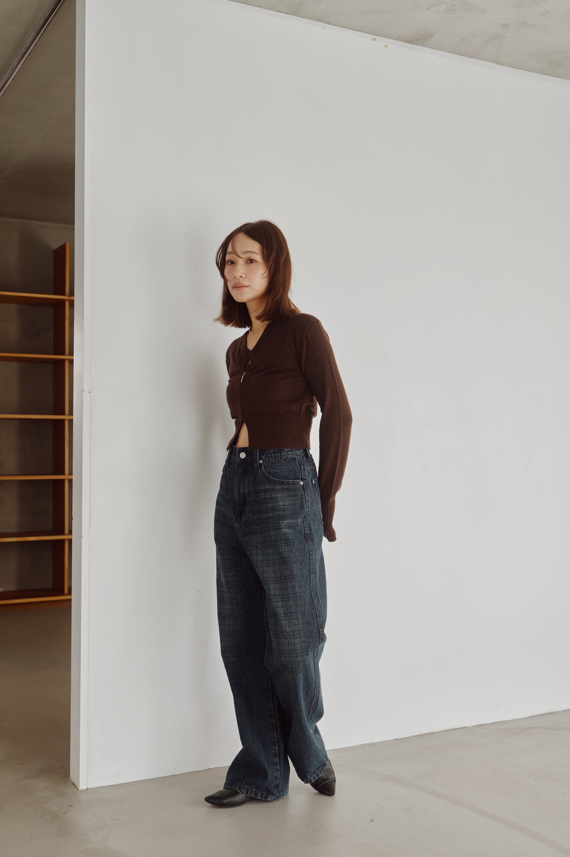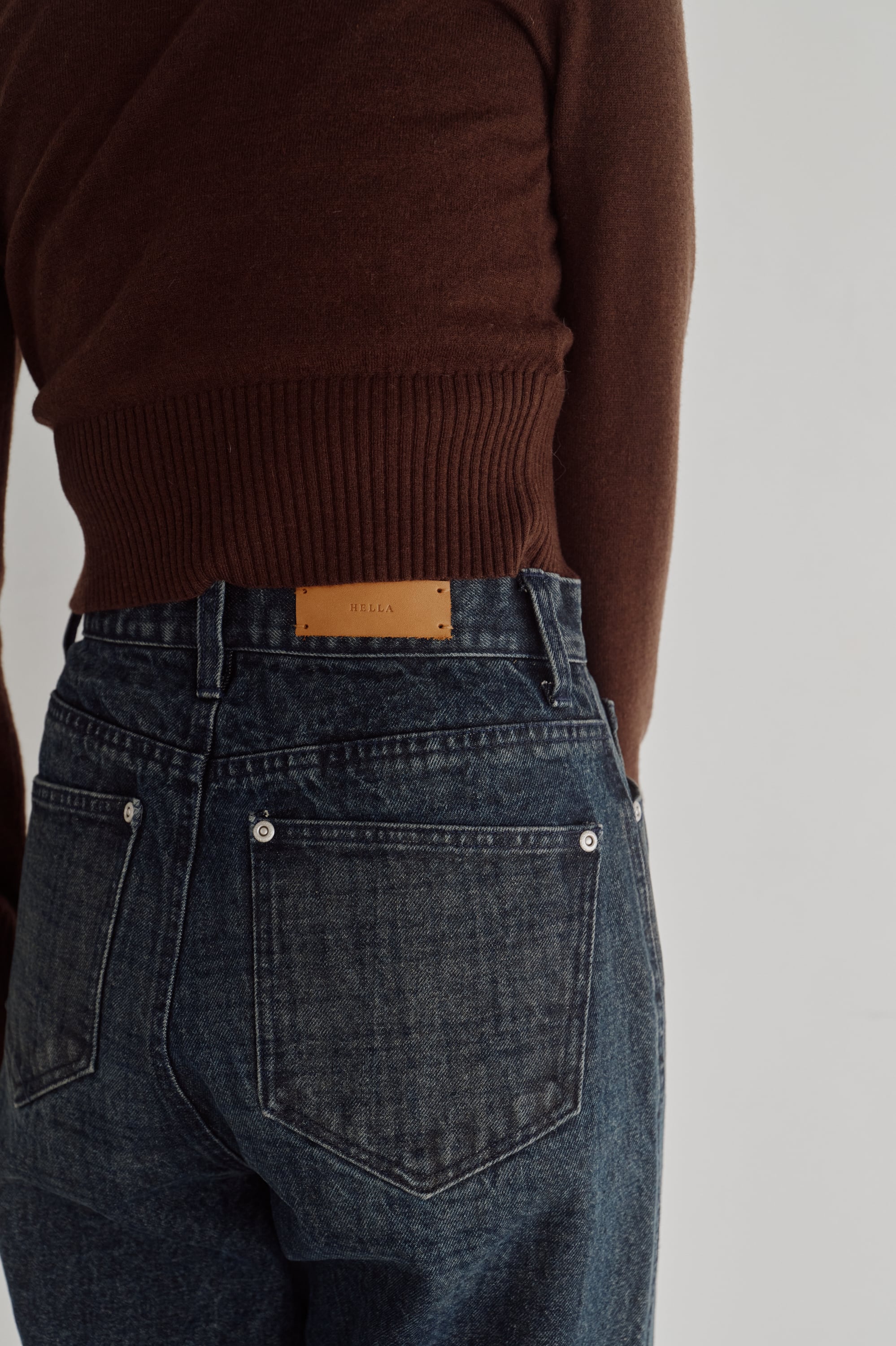程よい加工感で、きれいめにもカジュアルにも馴染む、HELLAらしいニュアンスデニムです。
