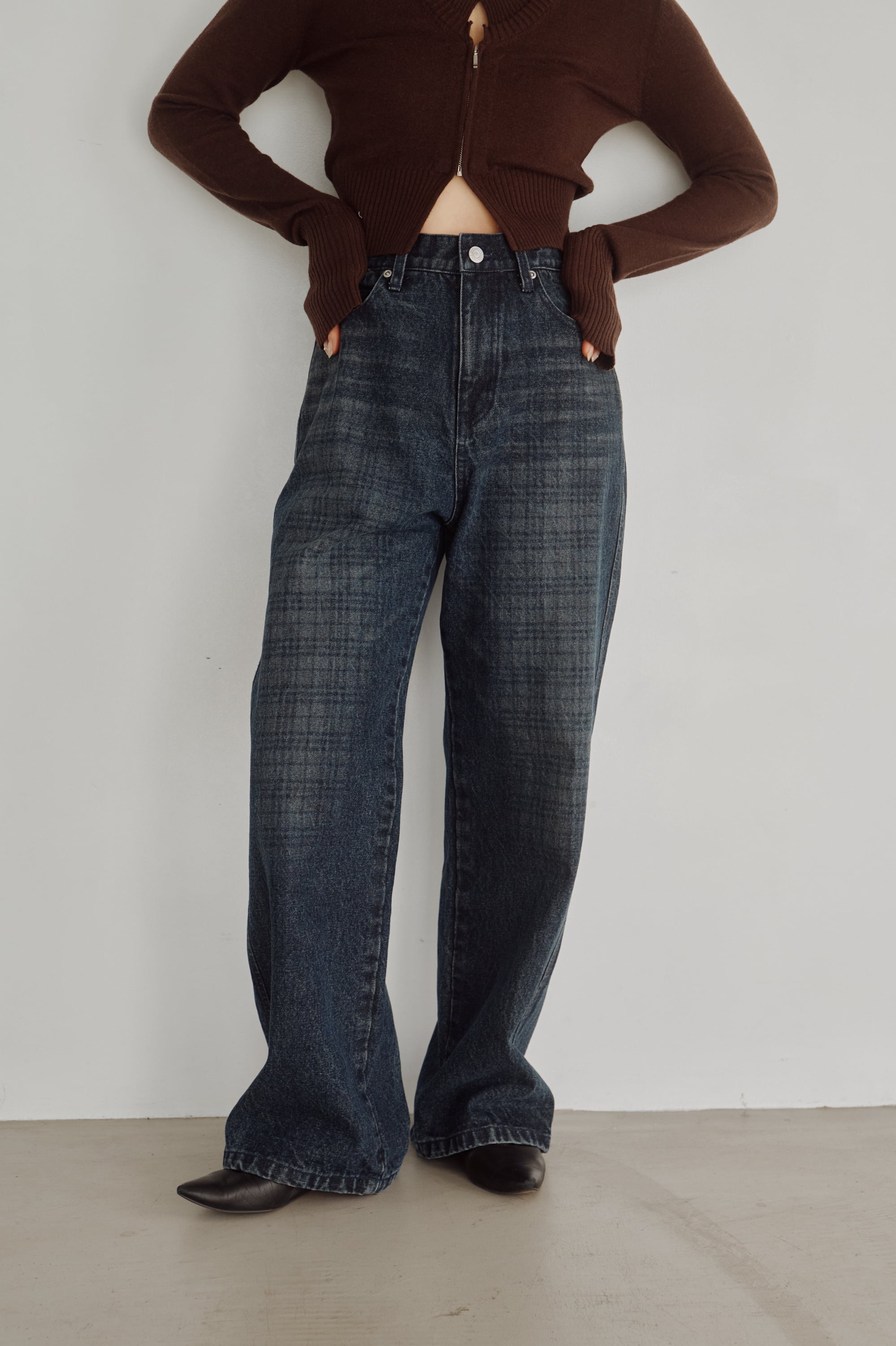 さりげなく浮かぶチェック柄が特徴のデニム。