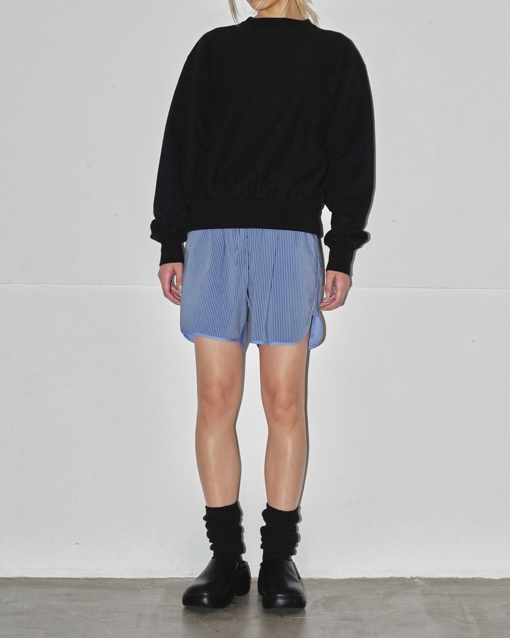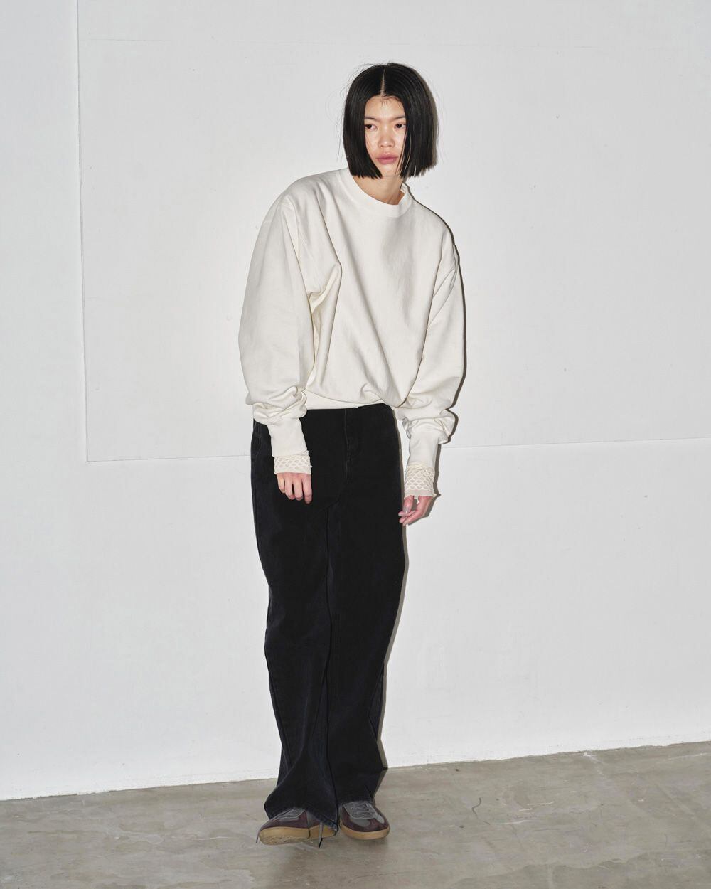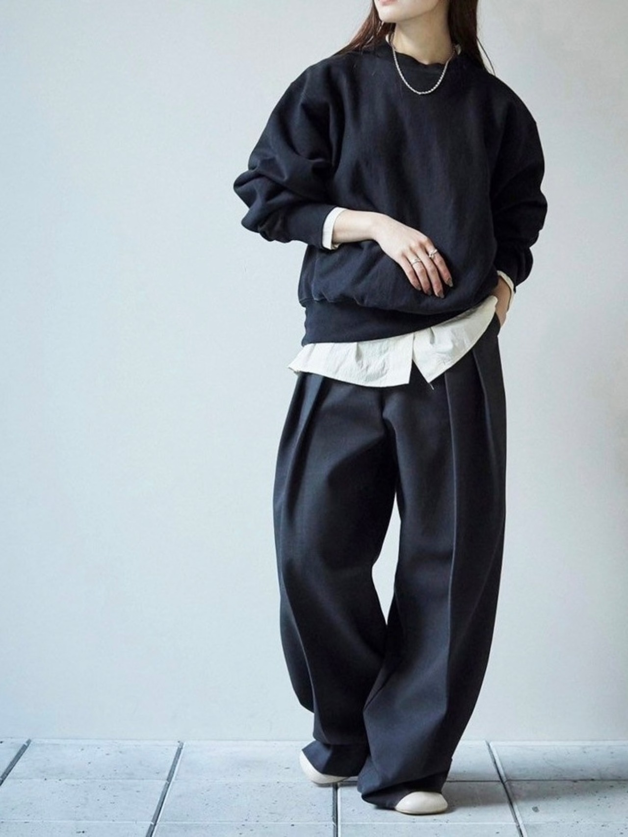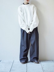 洗いの工程を加えることでヴィンテージ感のある表情に仕上げ、ゆるっとメンズライクに着れる一枚。ボトムスのシルエットを選ばず様々なスタイリングに馴染みます。