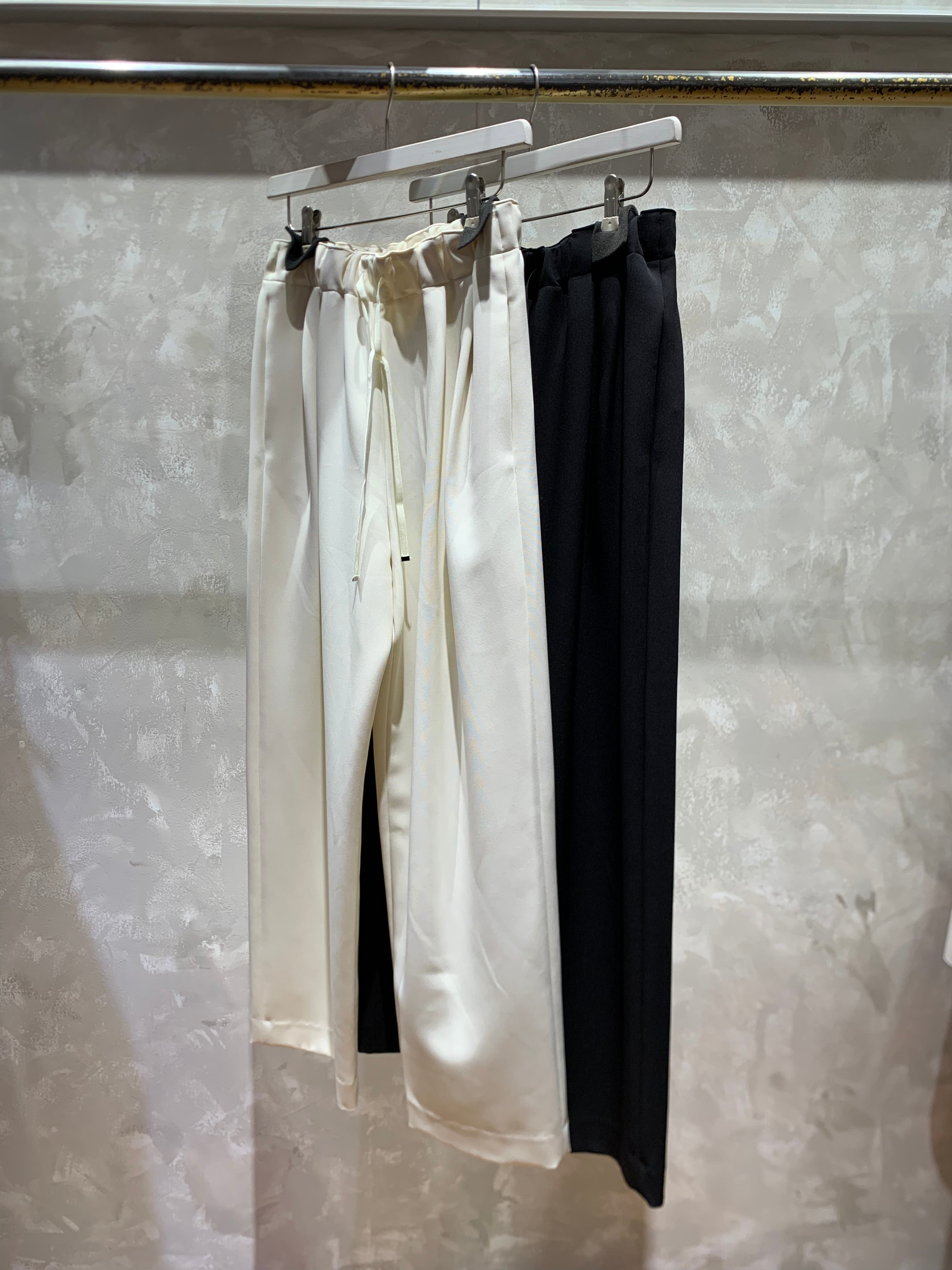 滑らかで落ち感のあるイージーストレートパンツです。